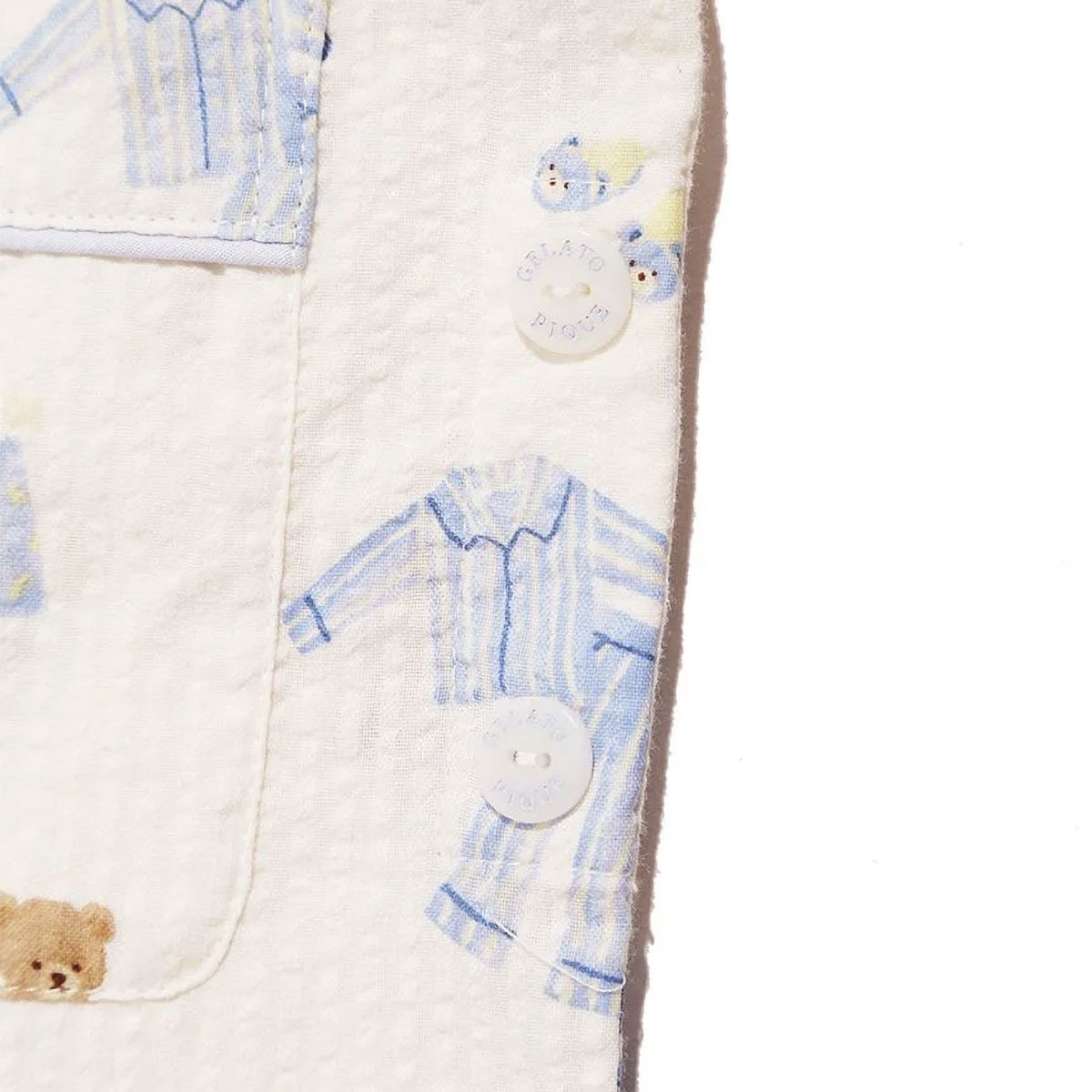 身生地には、シワが目立ちにくく、肌離れのいいコットン100%のサッカー生地を使用しています。
