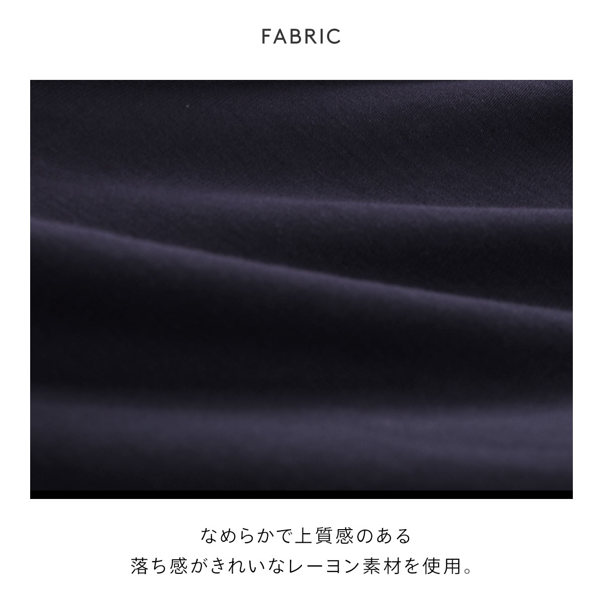 身生地には、なめらかで上質感のある、落ち感がきれいなレーヨン素材を使用。とろみのある肌触りと優れた伸縮性で、リラックスタイムを心地よく演出します。