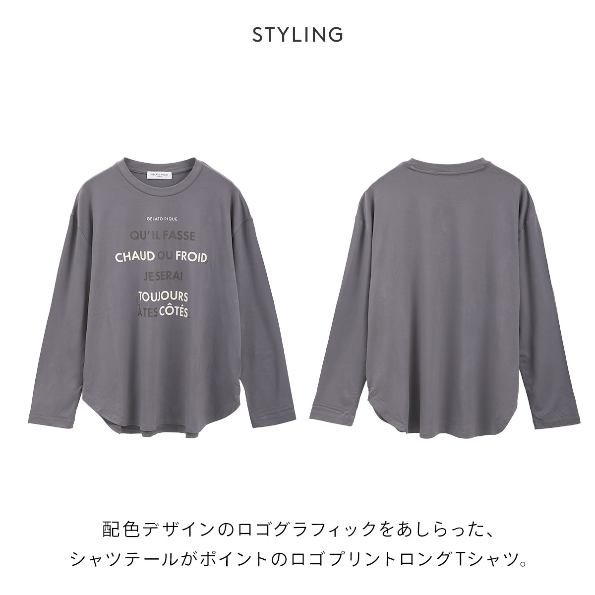 ジェラートピケ★シャツテールがポイントの配色ロゴロンT
