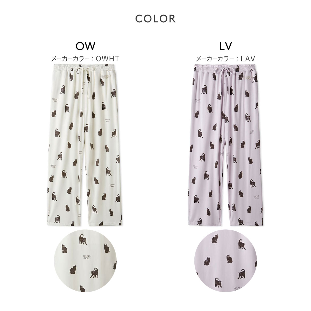 ジェラートピケ レディース HALLOWEEN CAT総柄ロングパンツ ジェラピケ パジャマ ルームウェア gelato pique(OW-オフホワイト-Free)