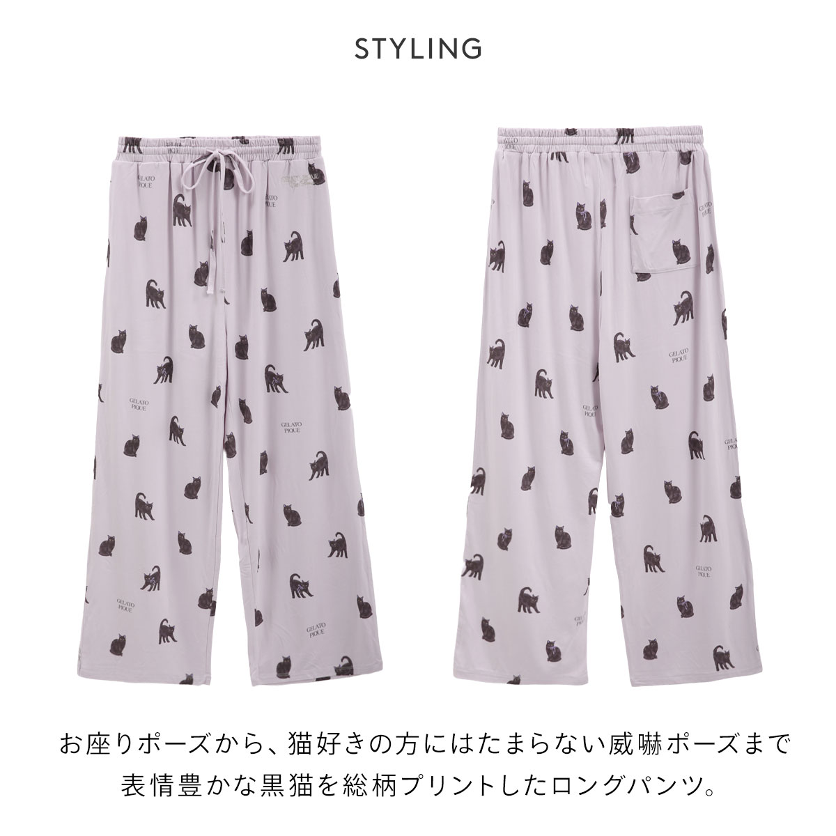 ジェラートピケ レディース HALLOWEEN CAT総柄ロングパンツ ジェラピケ パジャマ ルームウェア gelato pique(LV-ラベンダー-Free)