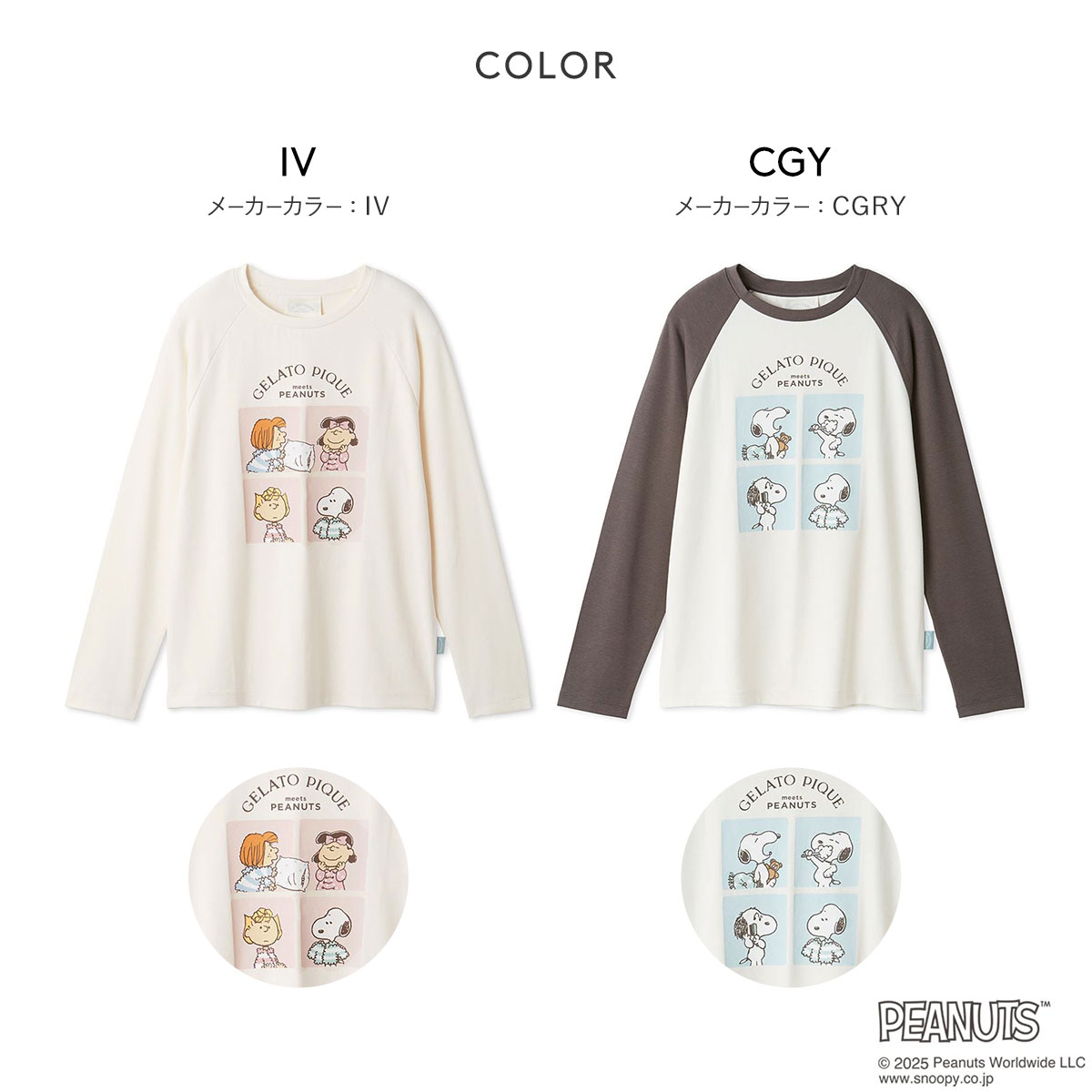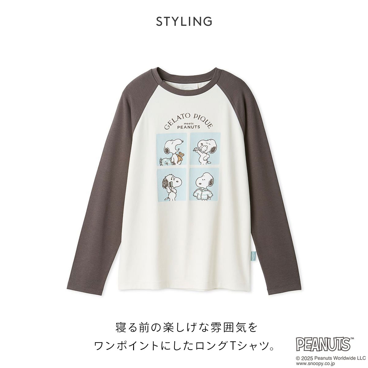 ジェラートピケ レディース PEANUTS オリジナルアートワンポイントロングTシャツ ジェラピケ ルームウェア スヌーピー gelato pique(IV-アイボリー-Free)