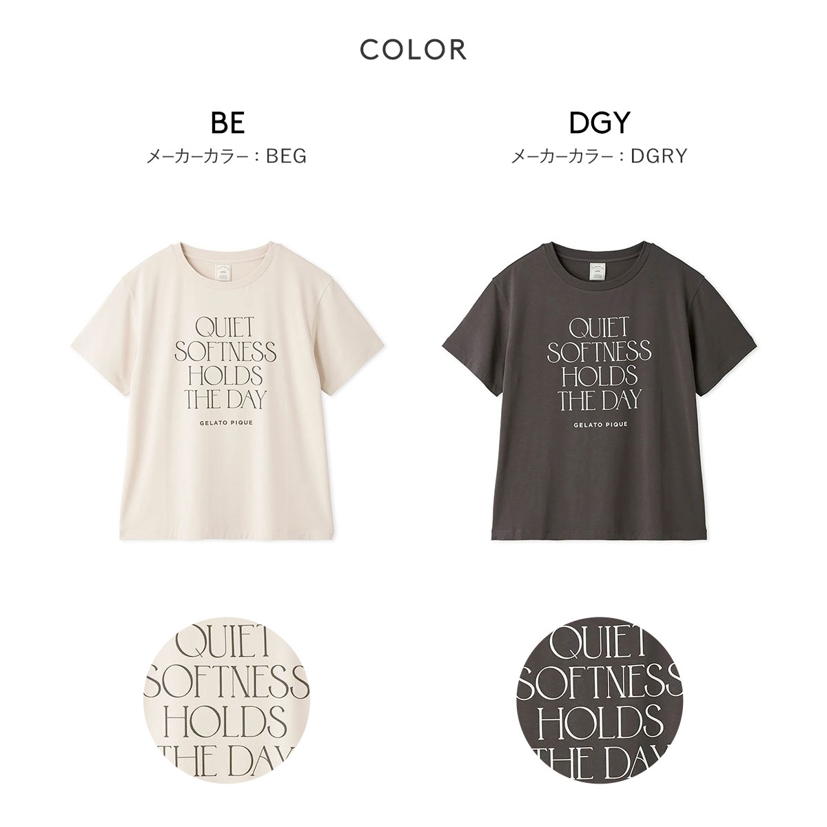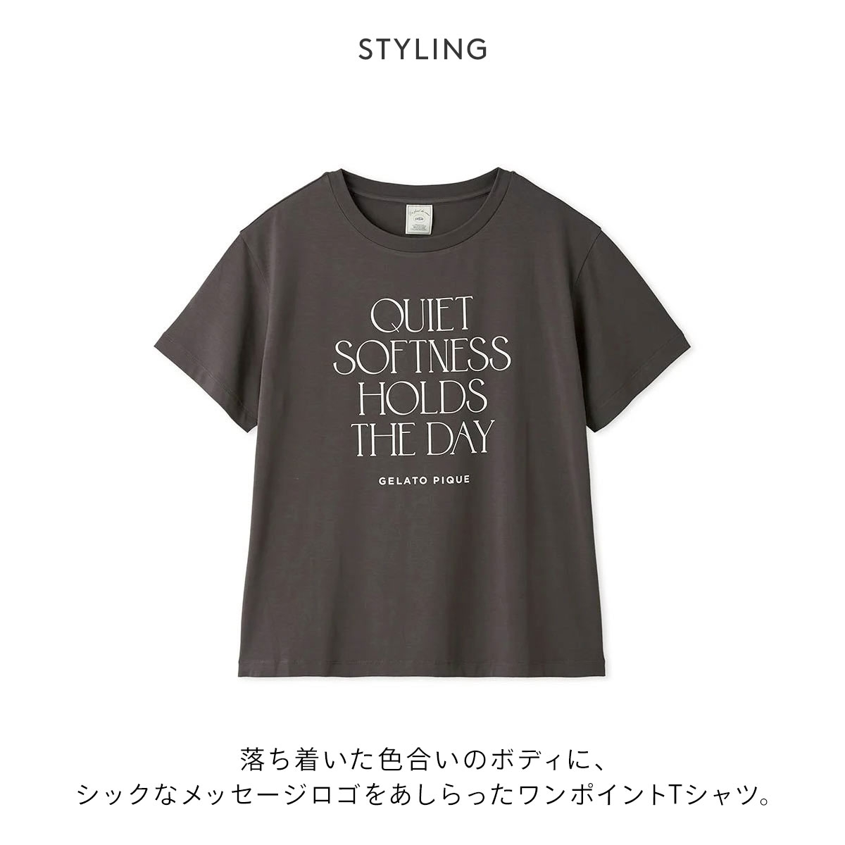 落ち着いた色合いのボディに、シックなメッセージロゴをあしらったワンポイントTシャツ。