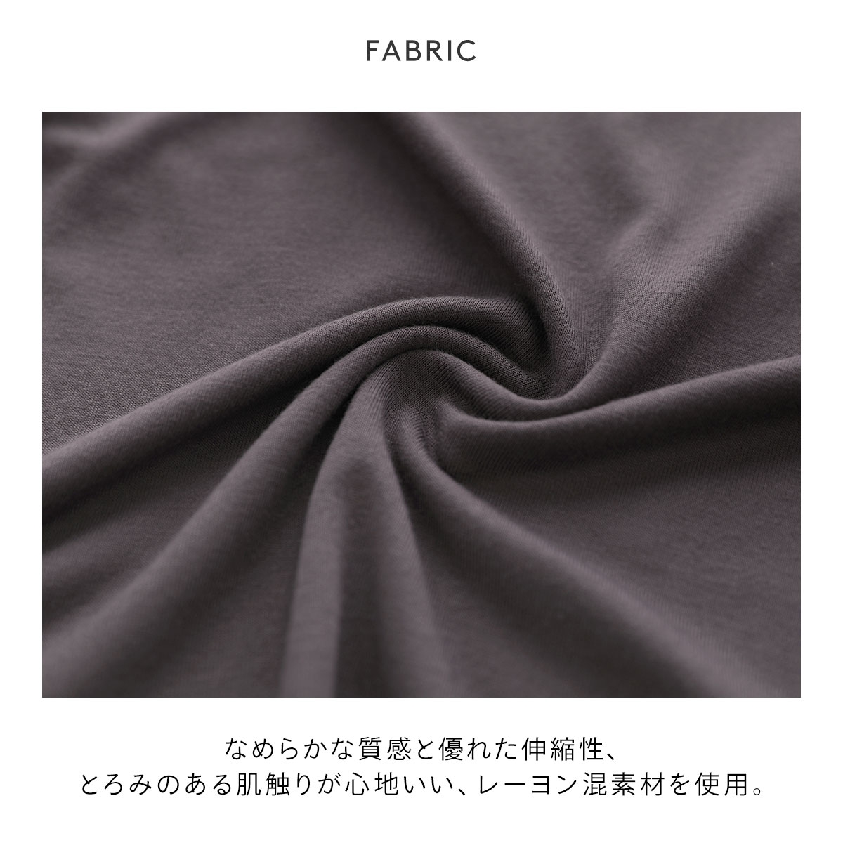 身生地には、なめらかな質感と優れた伸縮性、とろみのある肌触りが心地いい、レーヨン混素材を使用。