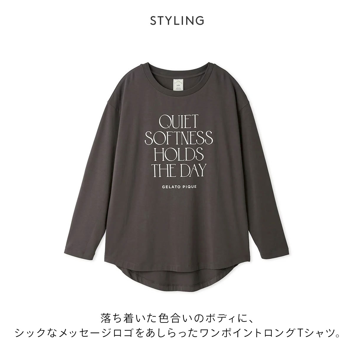 落ち着いた色合いのボディに、シックなメッセージロゴをあしらったワンポイントロングTシャツ。
