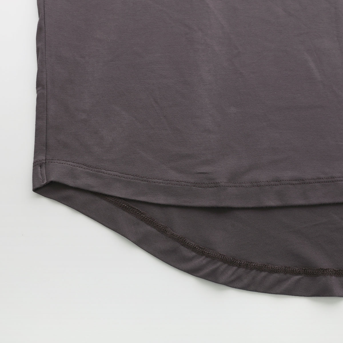 前後で着丈を変え、腰やヒップ周りをゆったりとカバーするサイズ感に仕上げています。