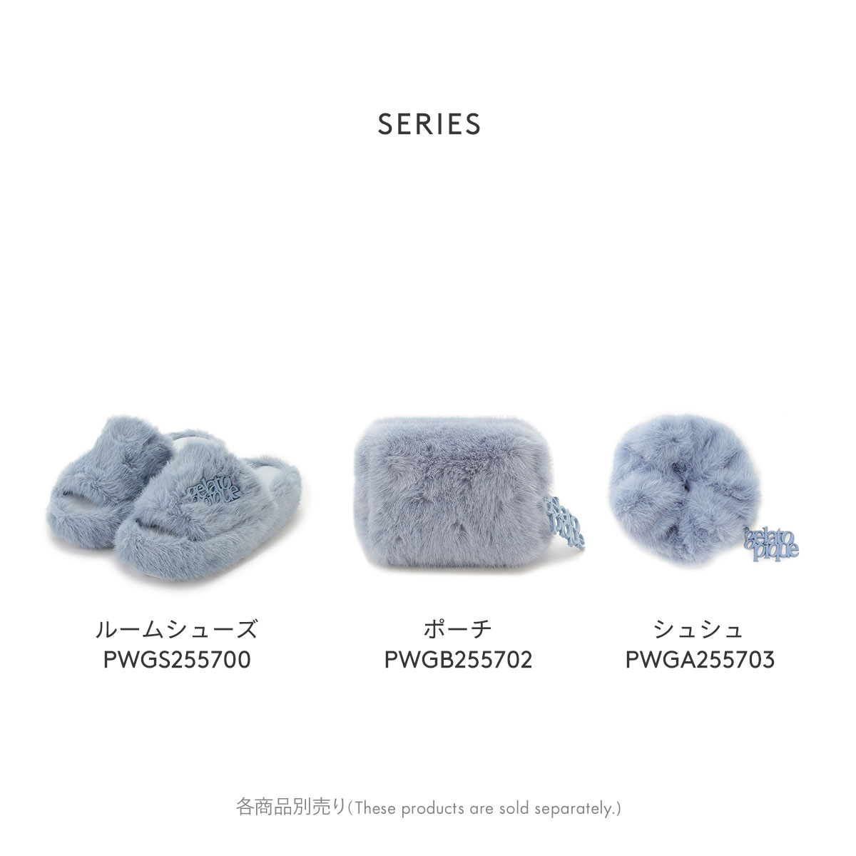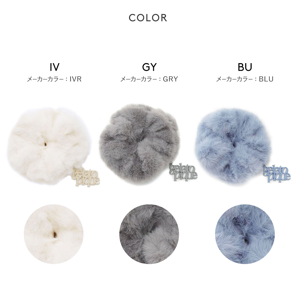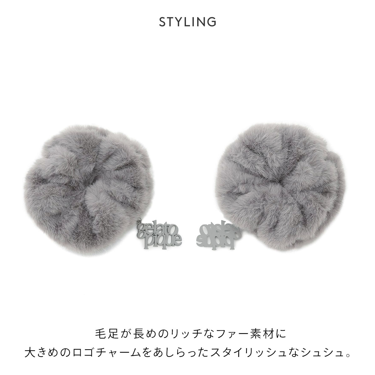 ジェラートピケ★ふわふわエコファーのロゴチャーム付きシュシュ