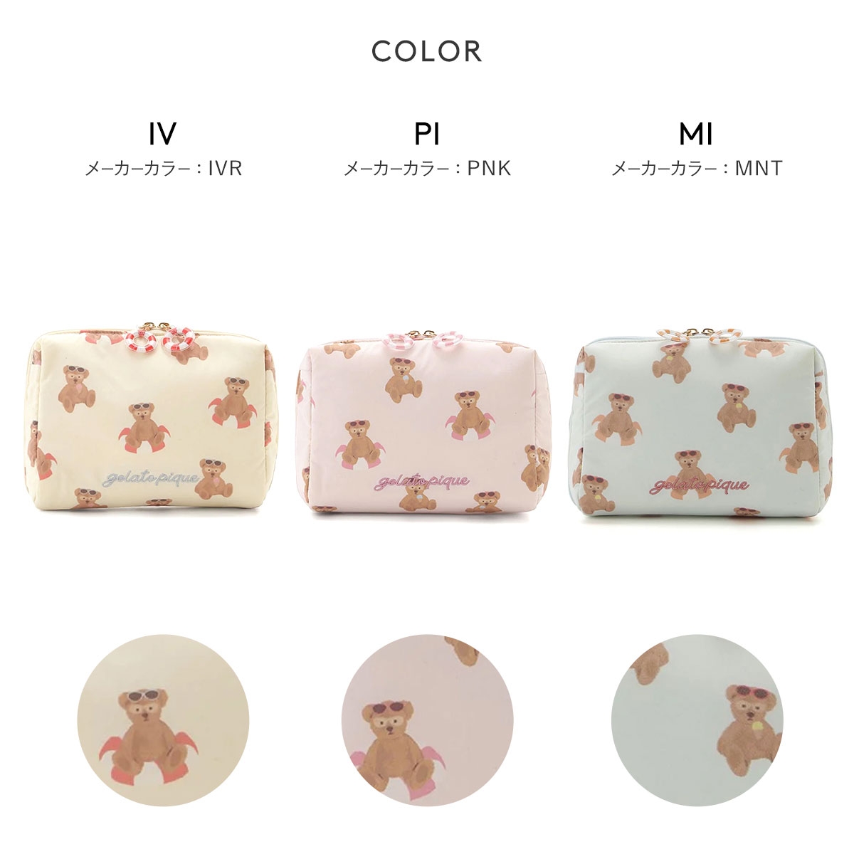 ジェラートピケ サマーベア総柄ポーチ ジェラピケ gelato pique(IV-アイボリー-Free)