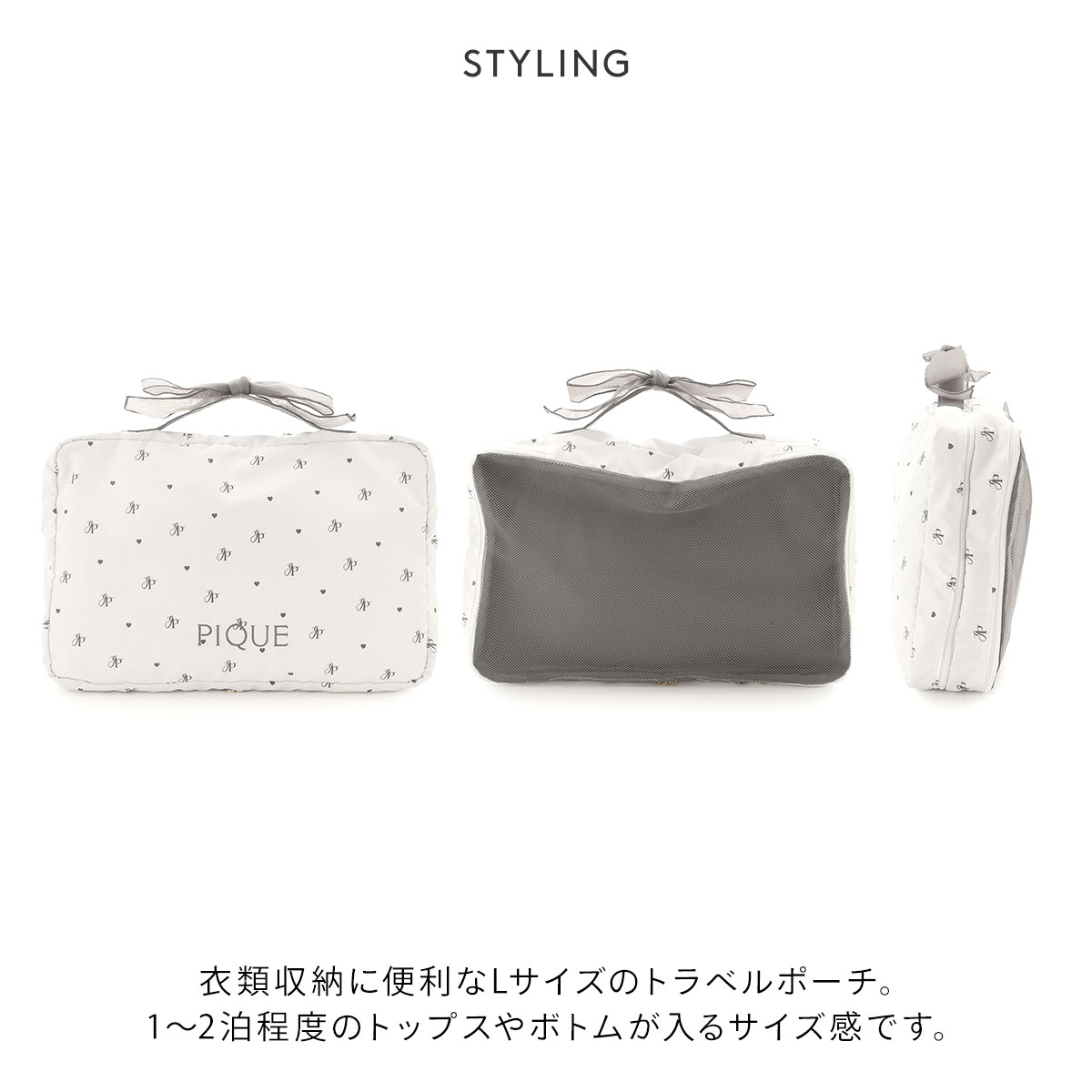 ジェラートピケ★1~2泊分のウェアが入るトラベルポーチL