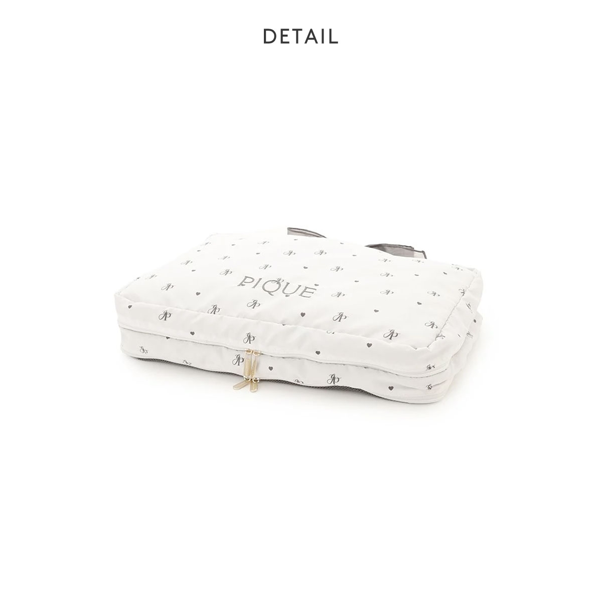 カラーは、モノグラム柄のアイボリーと小花柄のピンクの2色展開で、フロントにはワンポイントでロゴ刺繍が施されています。