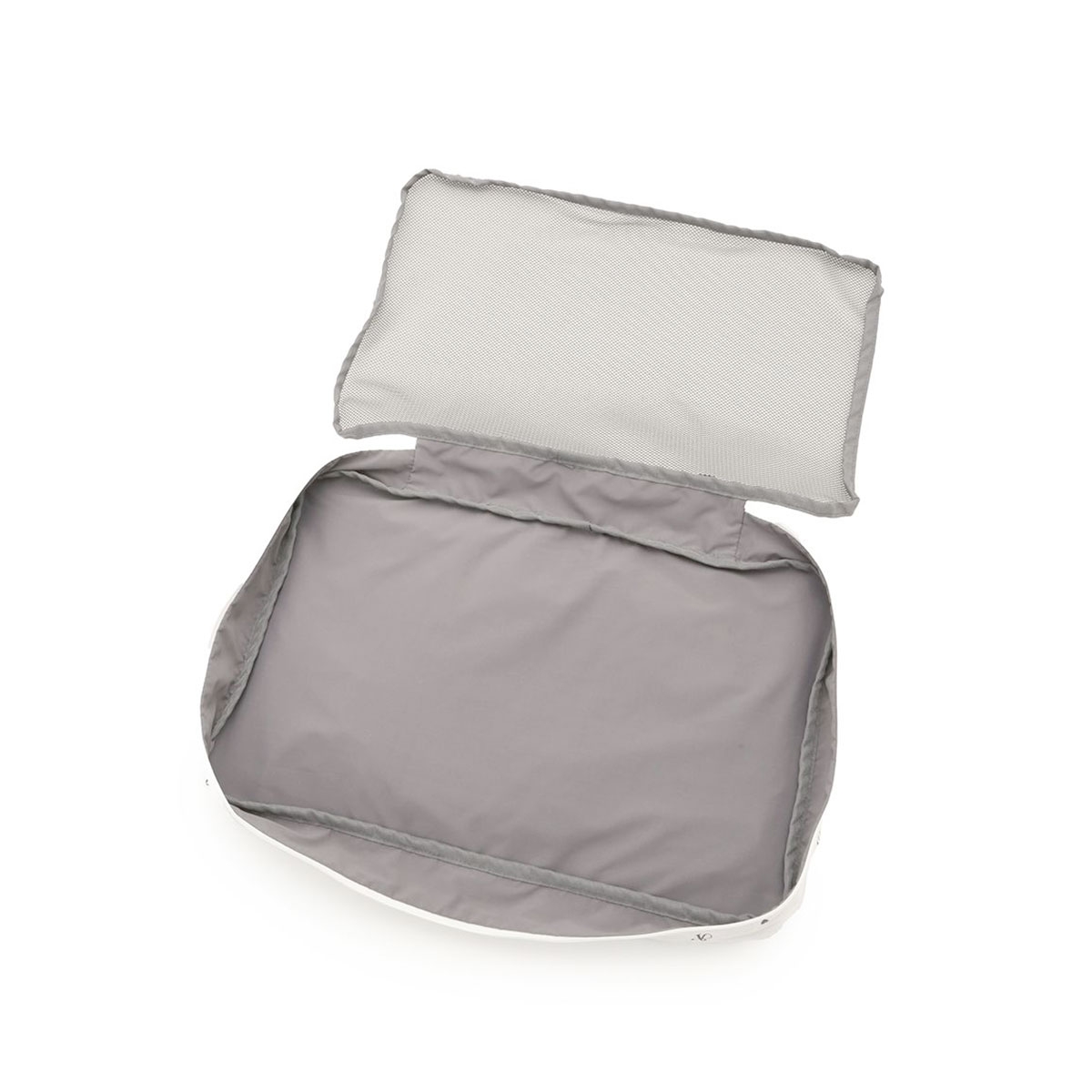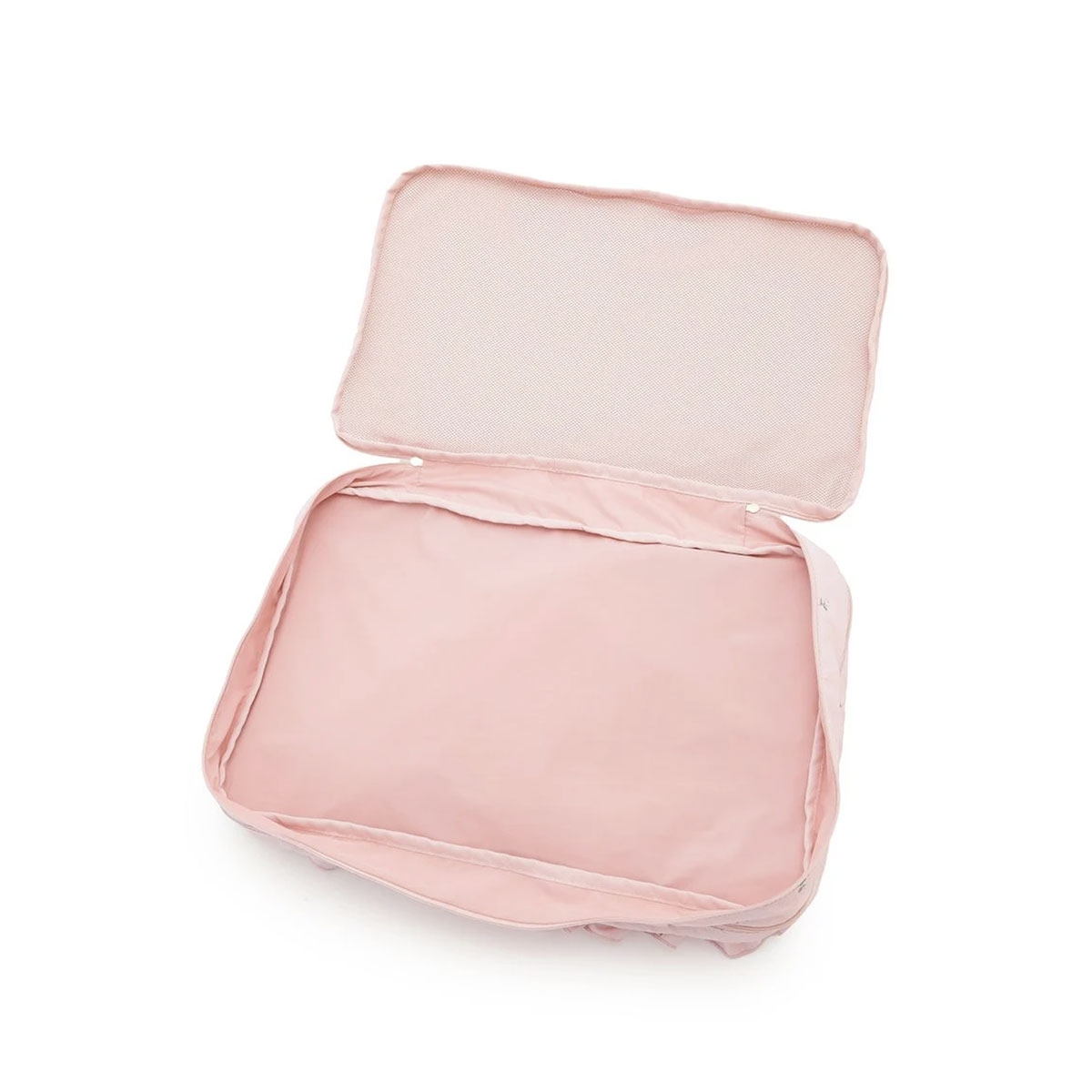 背面には使用済みの衣類を分けて収納できるメッシュポケットが付いています。
