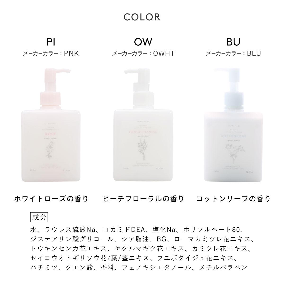 ヤシ油の洗浄成分を使用したハンドソープ。6種類の植物性の保湿成分を含んだやわらかな泡が、うるおいを与えながら手肌を優しく洗い上げます。手を洗うたびふんわり香るフローラルの香りに心躍ること間違いなし。フレンチムード漂うお洒落なパッケージで、ギフトにも人気の一品です。