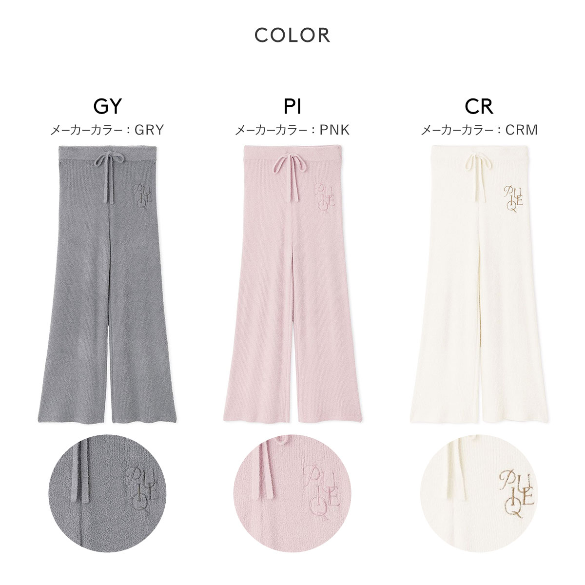 | カラー | GY-グレー、PI-ピンク、CR-クリーム |