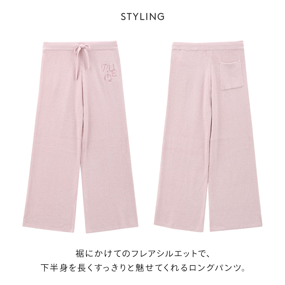 裾にかけてのフレアシルエットで、下半身を長くすっきりと魅せてくれるロングパンツ。