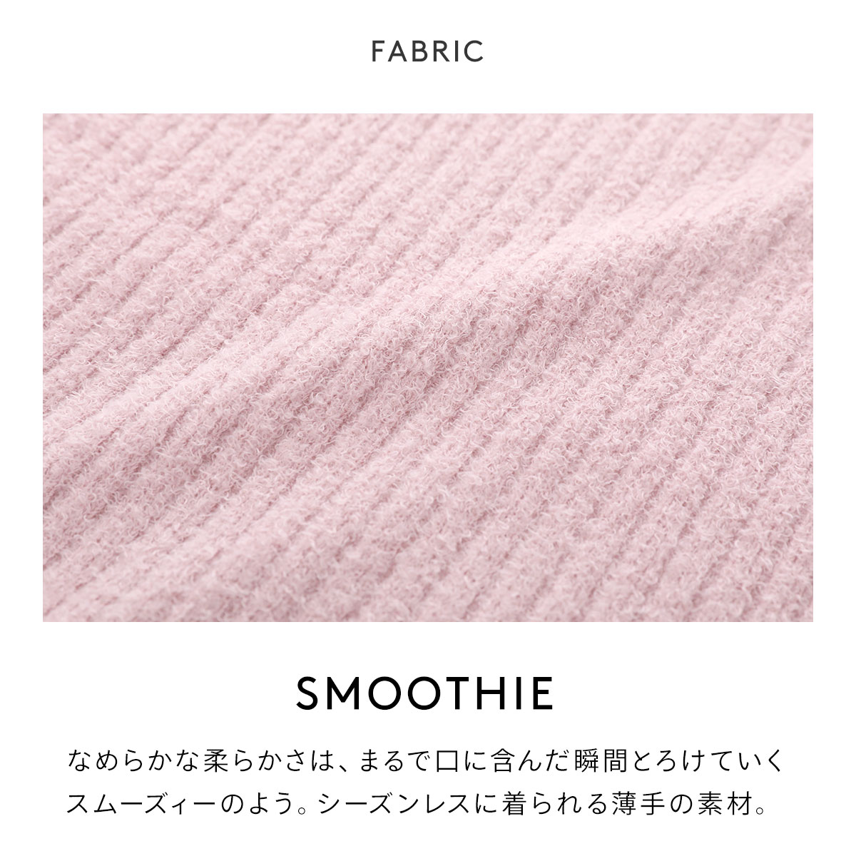 身生地には、繊細な起毛感と、とろけるようになめらかな肌触りがやみつきになりそうな、スムーズィー素材を使用。