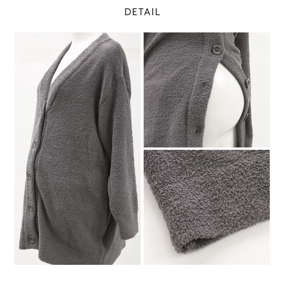 すっぽりとお腹を包み込むシルエットと、長めの丈感にこだわったマタニティカーディガン。