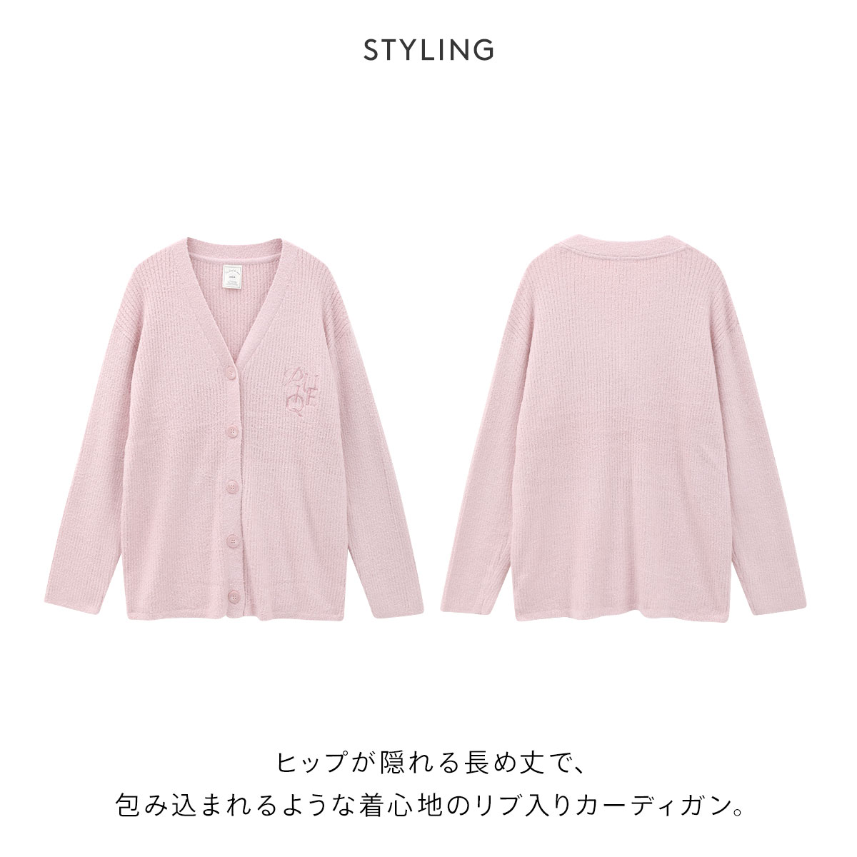 ヒップが隠れる長め丈で、包み込まれるような着心地のリブ入りカーディガン。