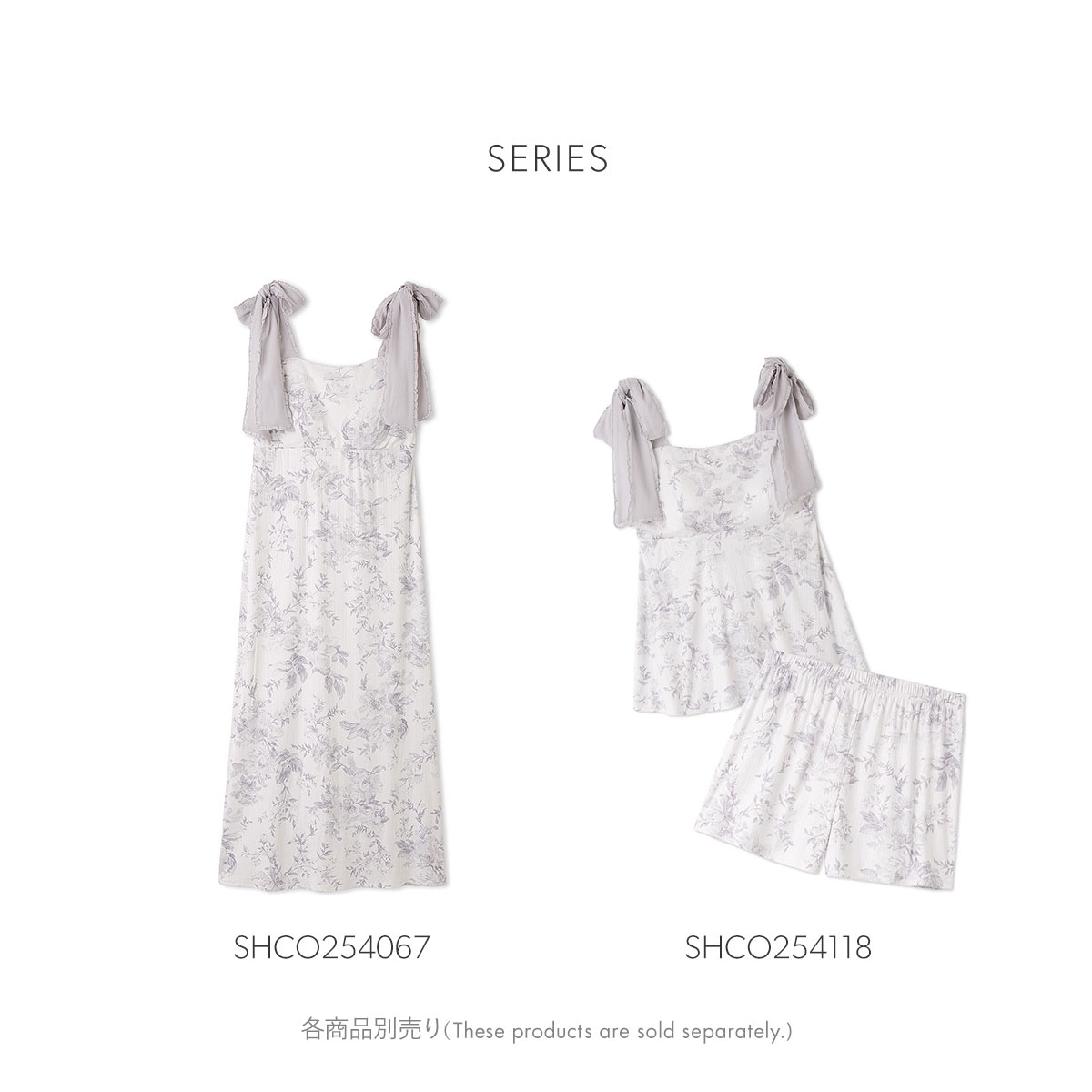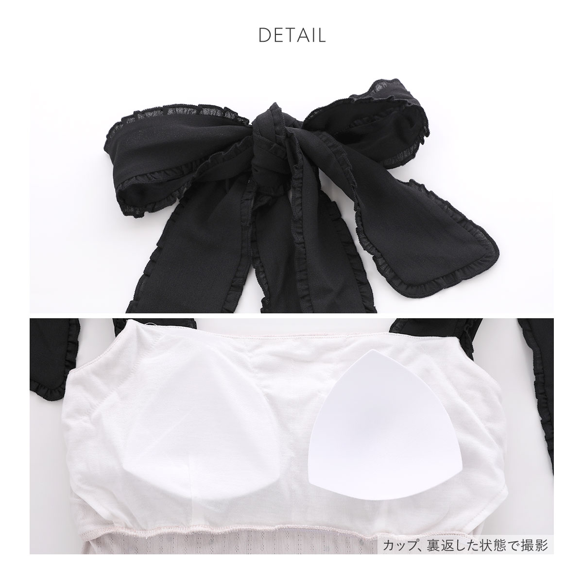 太めのショルダーリボンが可愛く主張するロングワンピースは、カップイン仕様でこれ一枚で着用可能。ふんわりとフレアに広がる裾がフェミニンな印象を与えます。