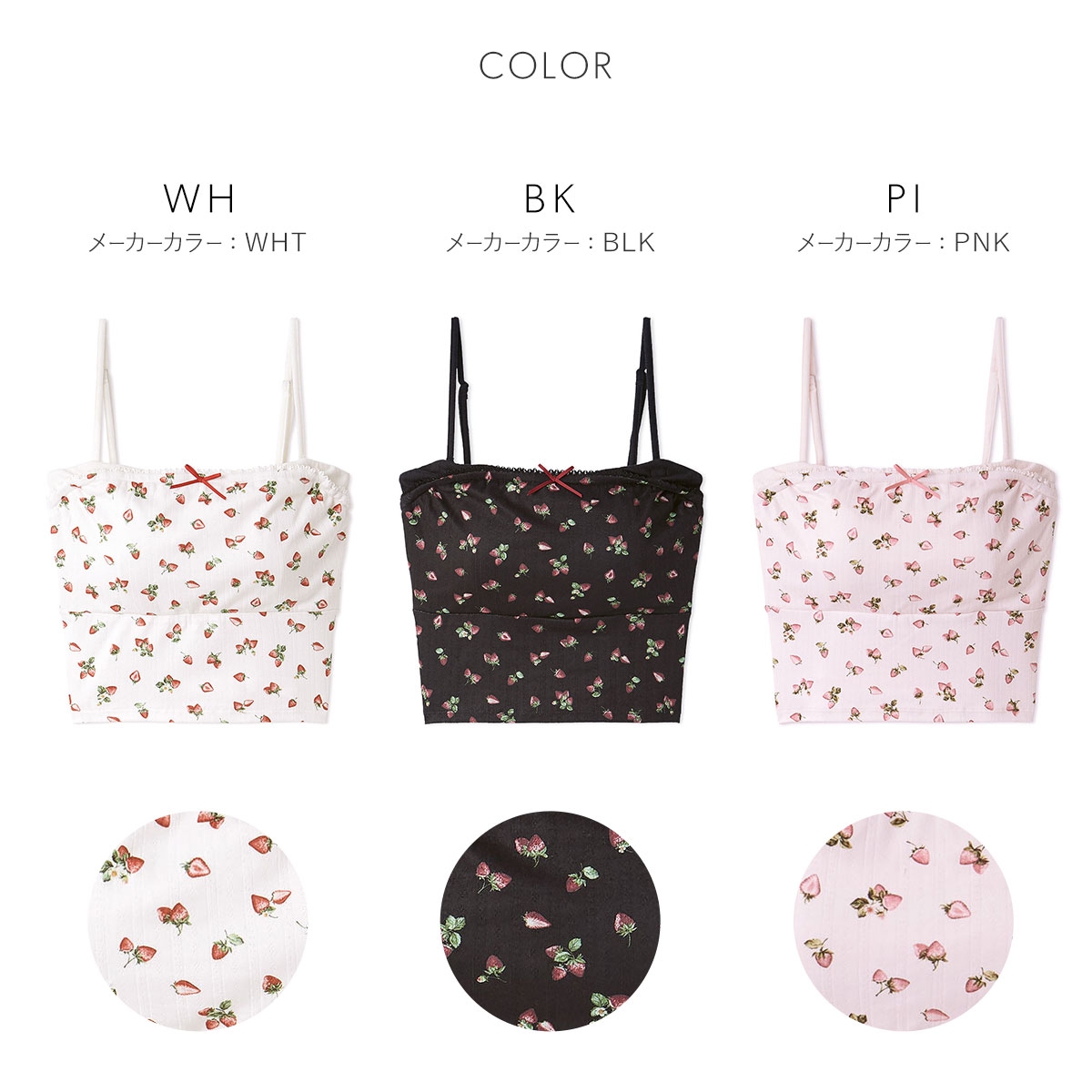 カラーWH-ホワイト、BK-ブラック、PI-ピンク