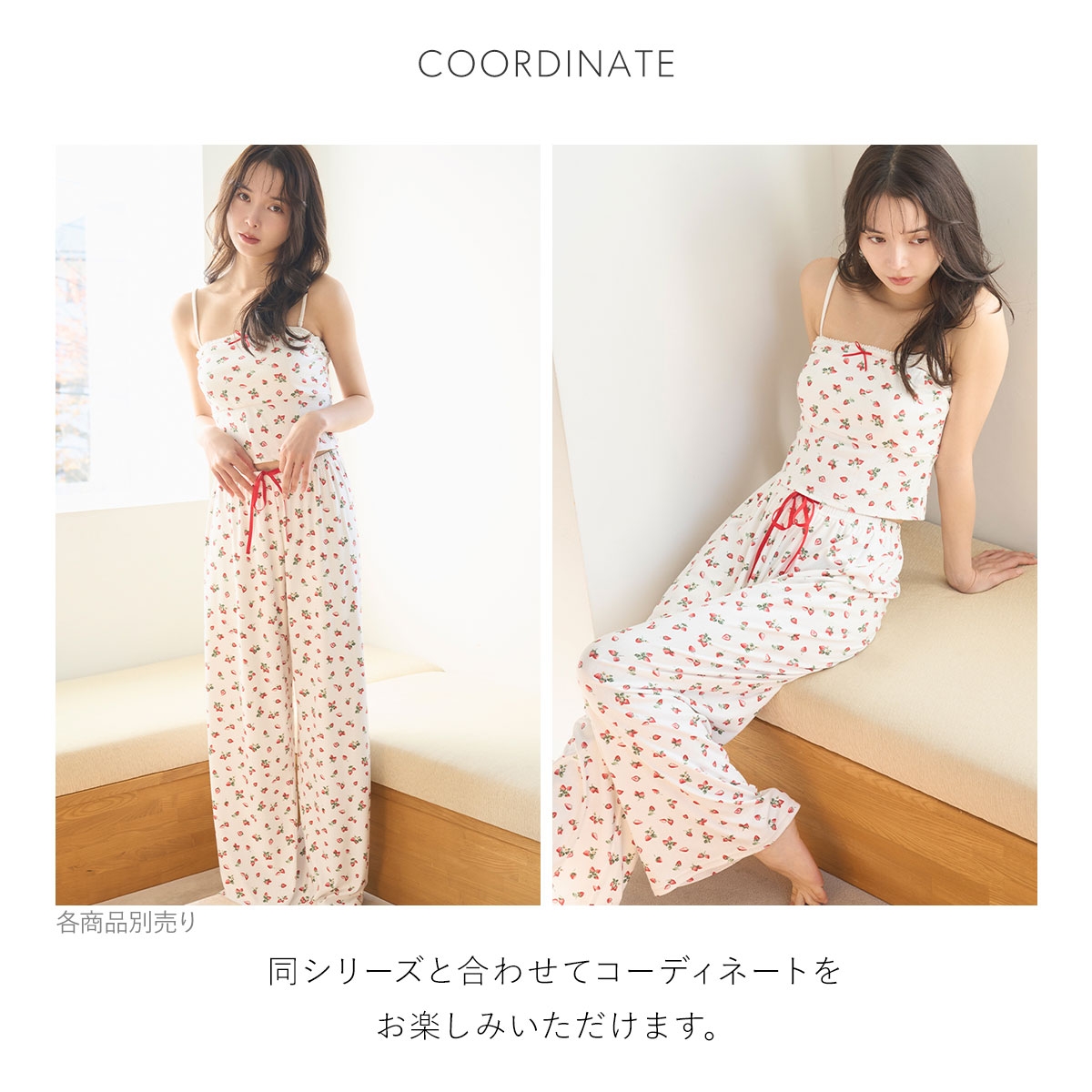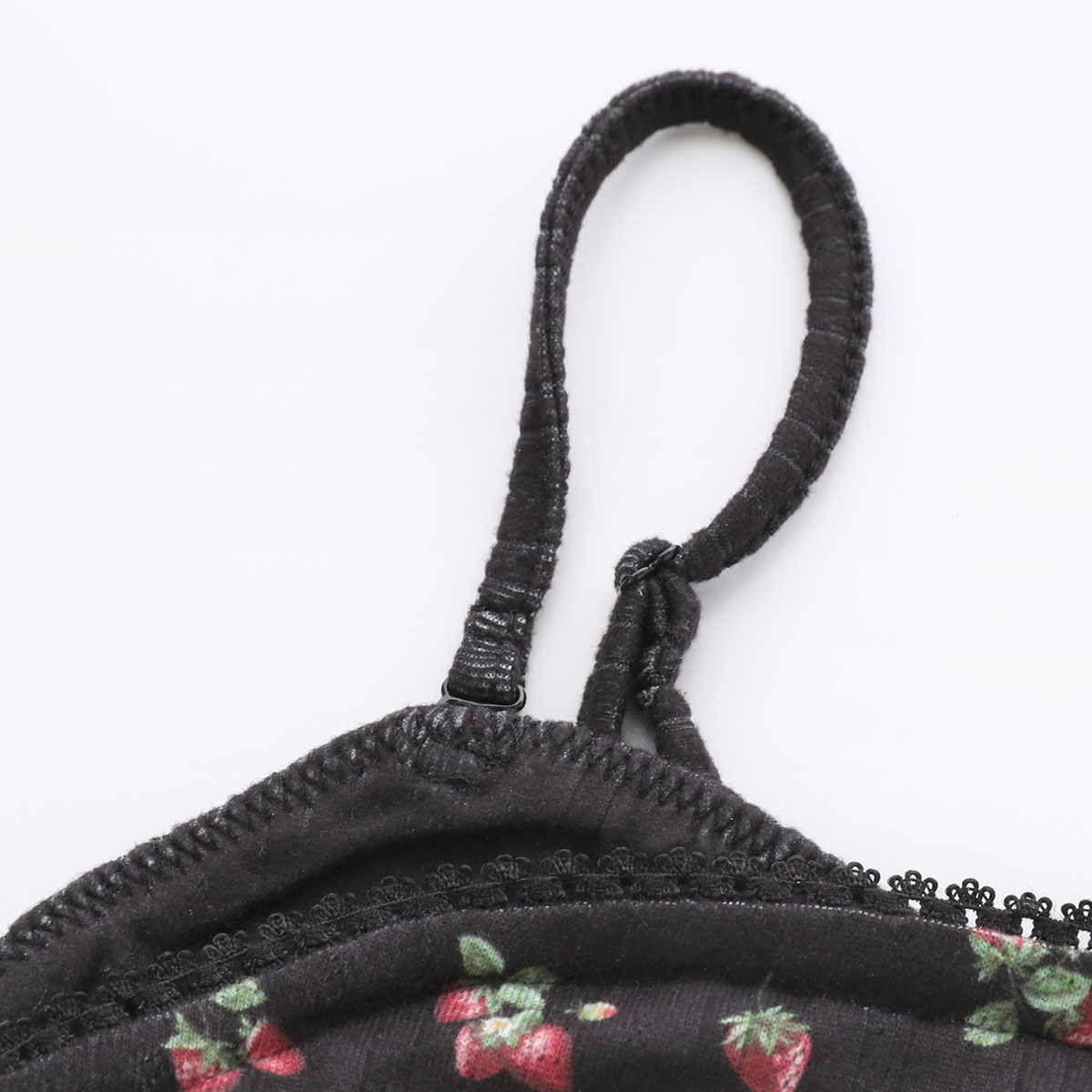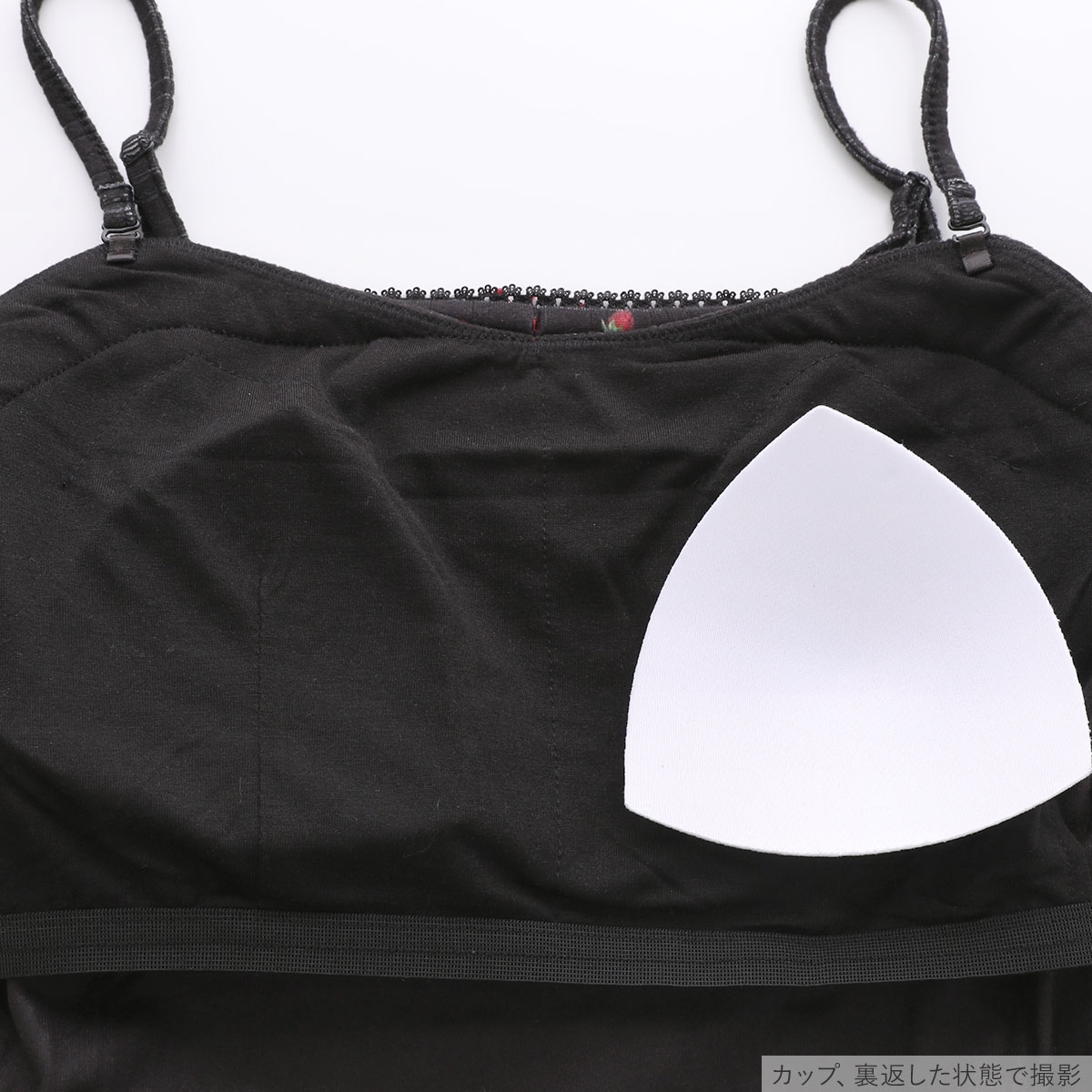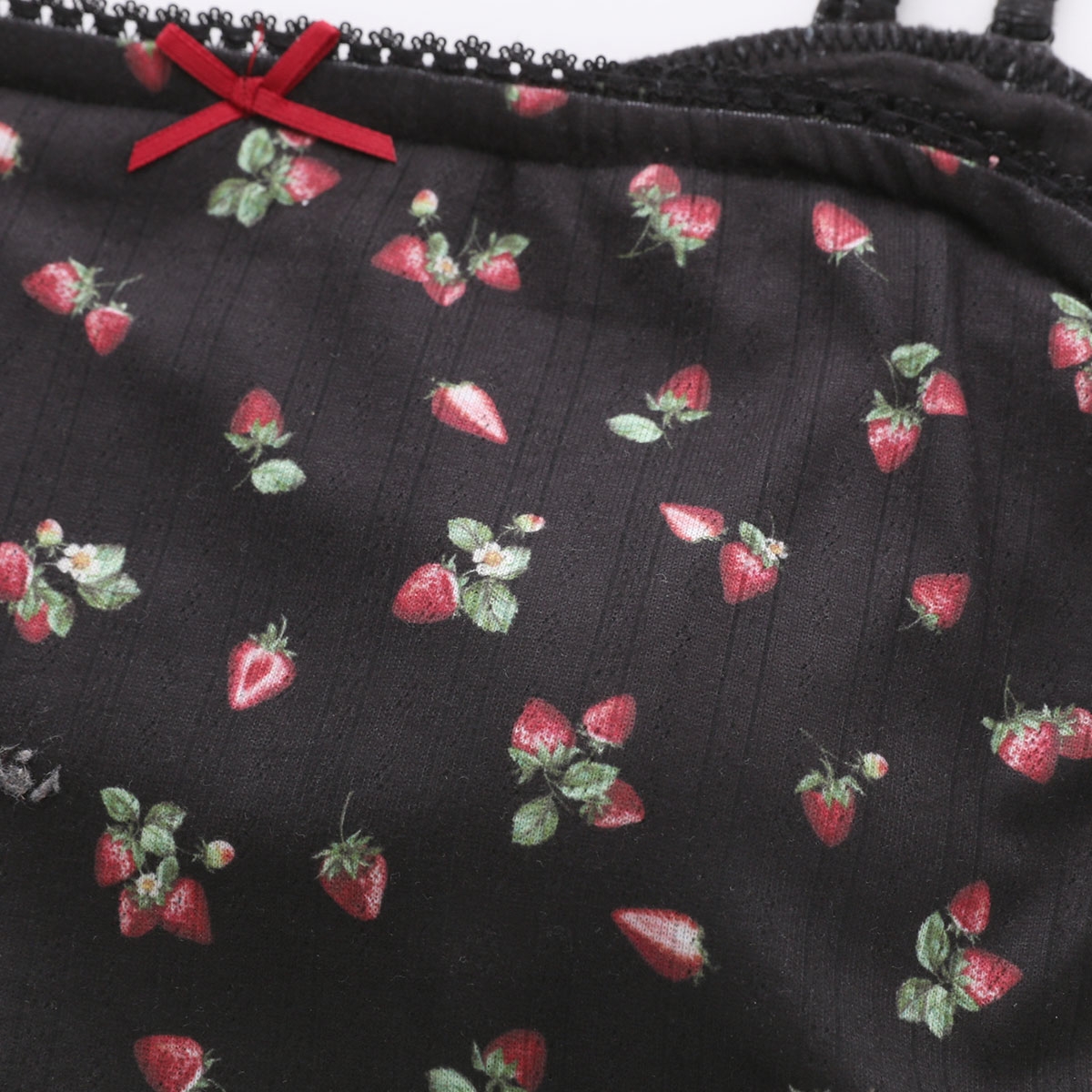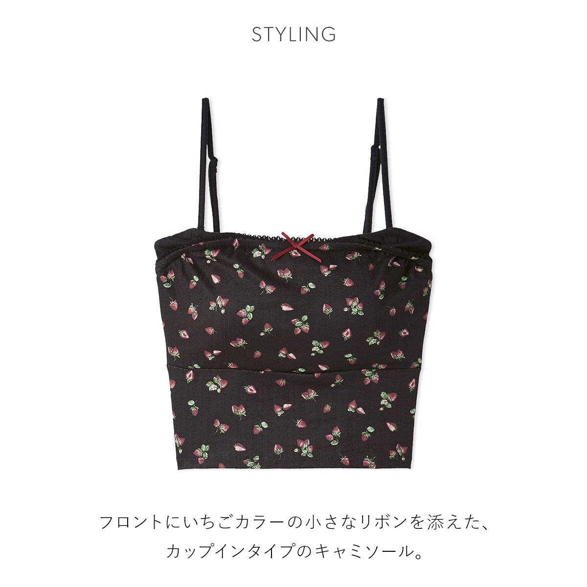 こちらは、フロントにいちごカラーの小さなリボンを添えた、カップインタイプのキャミソールです。