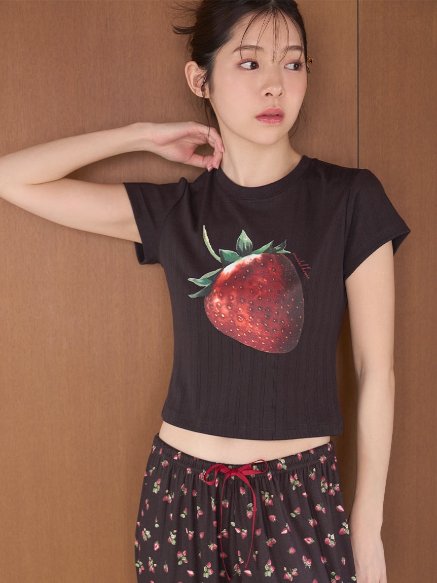 スナイデルホーム ストロベリーアイレットミニTシャツ パジャマ ルームウェア SNIDEL HOME(BK-ブラック-Free)