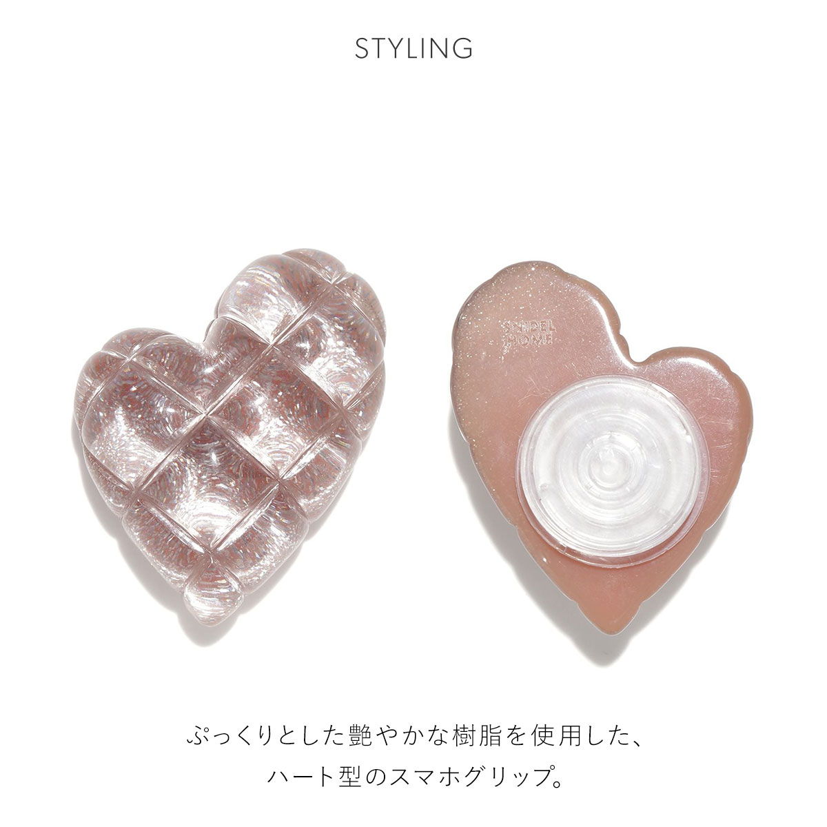 ぷっくりとした艶やかな樹脂を使用した、ハート型のスマホグリップです。