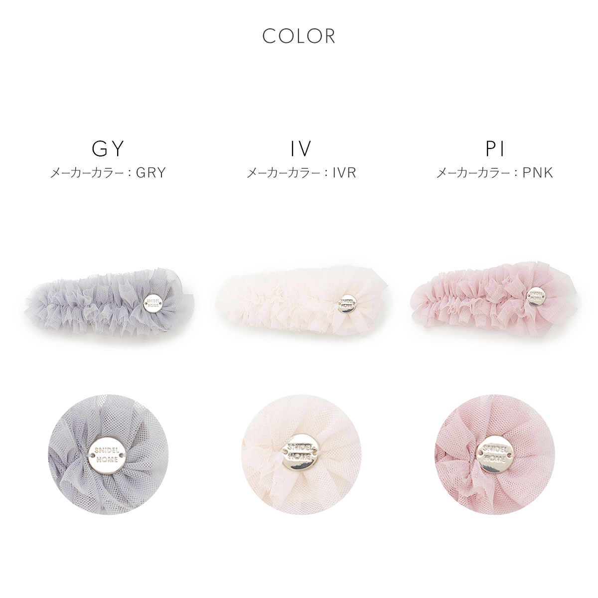 カラーGY-グレー、IV-アイボリー、PI-ピンク