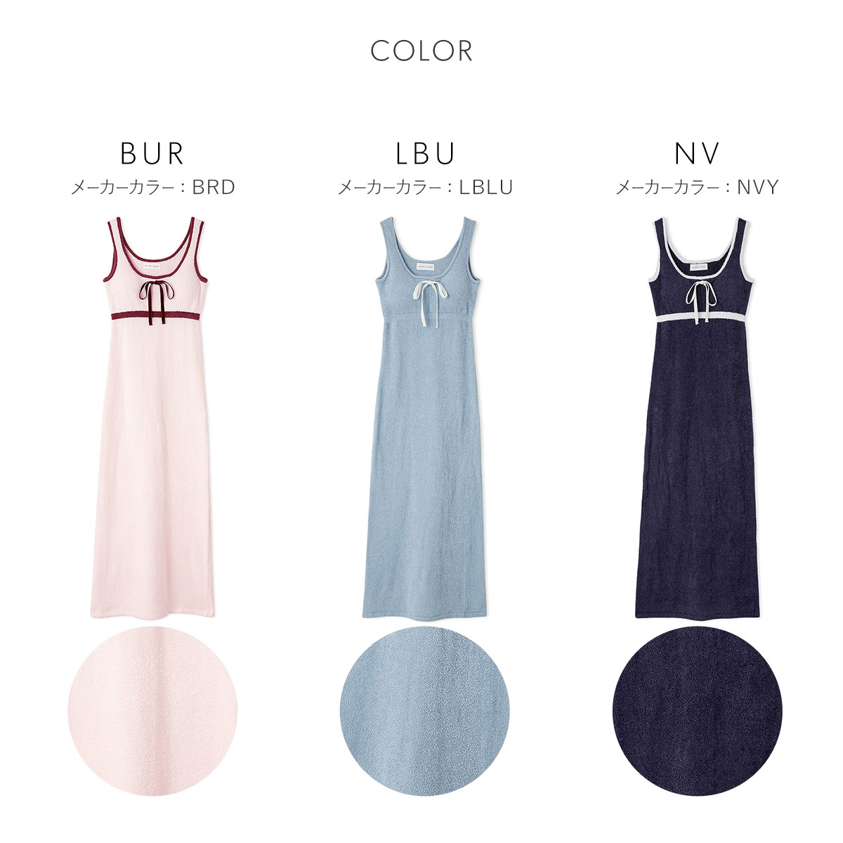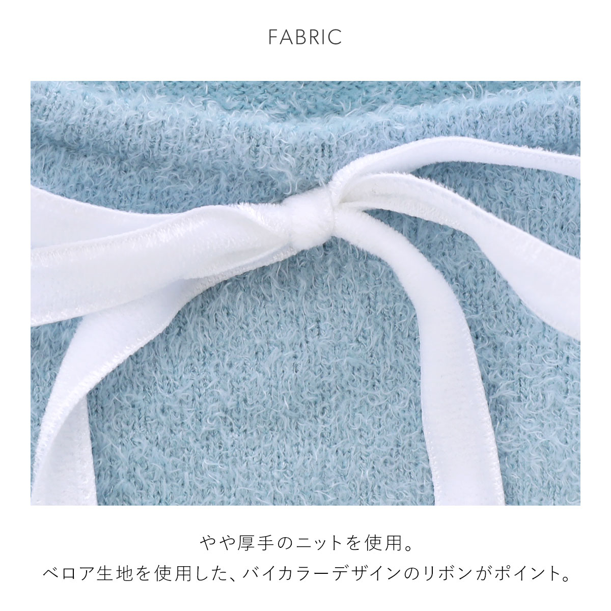 しなやかなベロア生地を使用した、バイカラーデザインがおしゃれなニットワンピース。カップインのバスト下にラインを入れ、胸元にリボンを添えた品のあるデザインです。