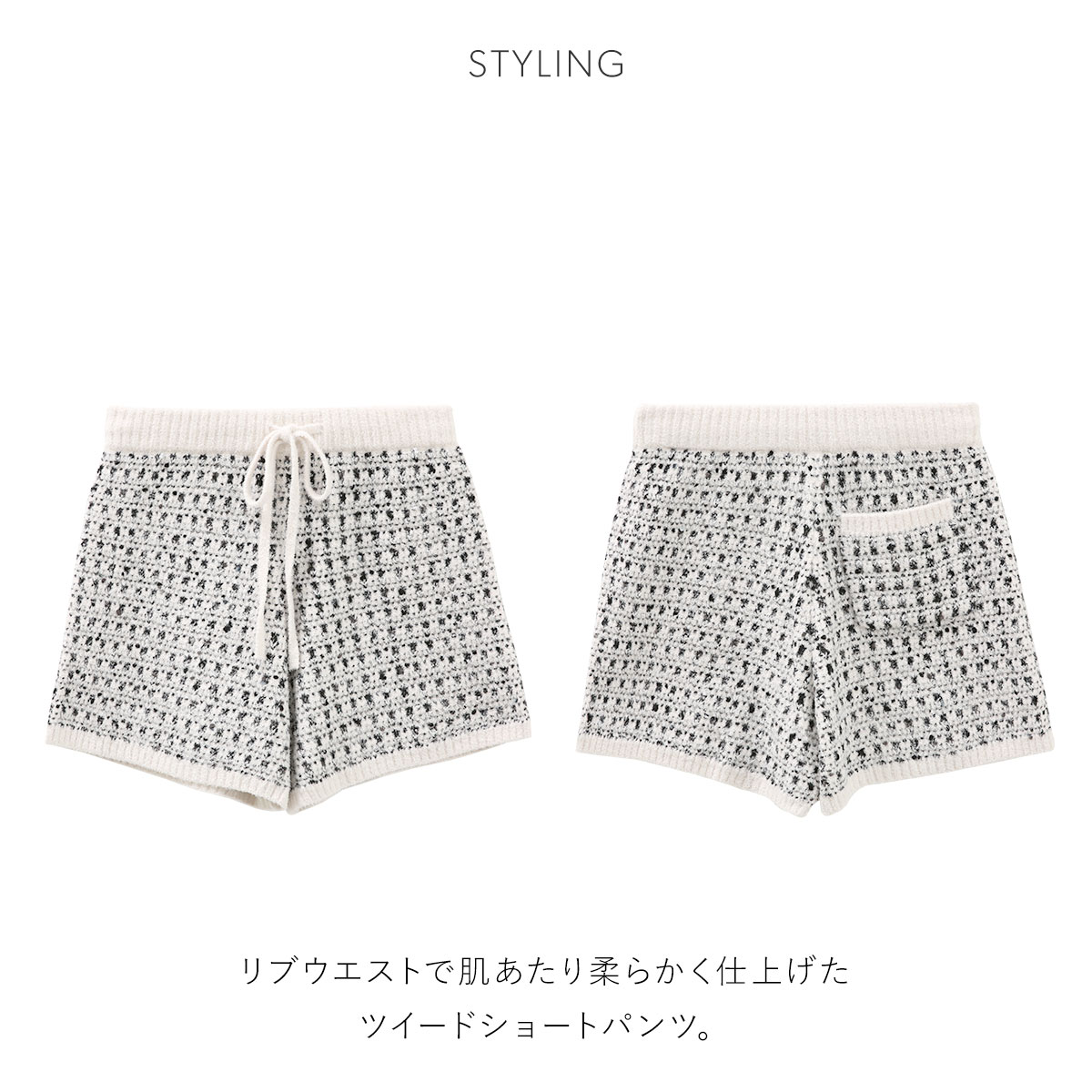 ネップを出した柔らかな風合いのツイード生地を使用した、エレガントなショートパンツ。