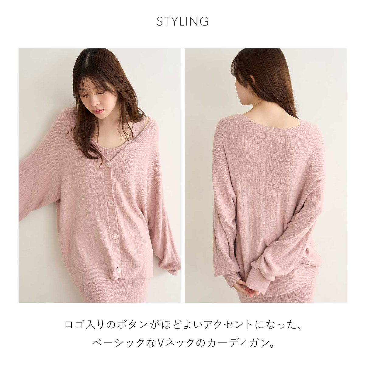 ロゴ入りのボタンがほどよいアクセントになった、ベーシックなVネックのカーディガン。