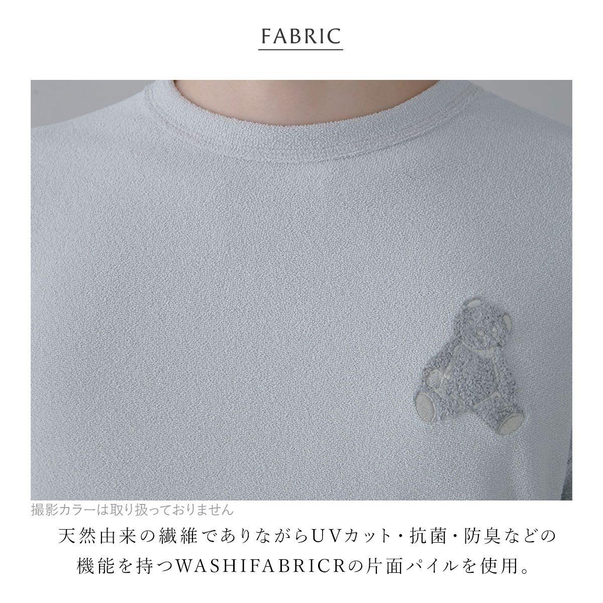 身生地には、天然由来の繊維でありながらUVカット・抗菌・防臭などの機能を持つ、WASHIFABRICRの片面パイルを使用。暑さが残る秋口にかけても快適にご着用いただけます。