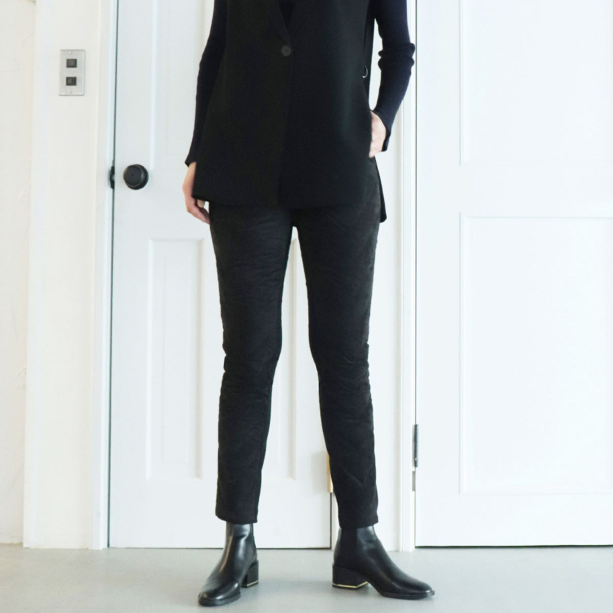 フロントにスエード調ダウンキルトを使用した、あったかダウンパンツです。