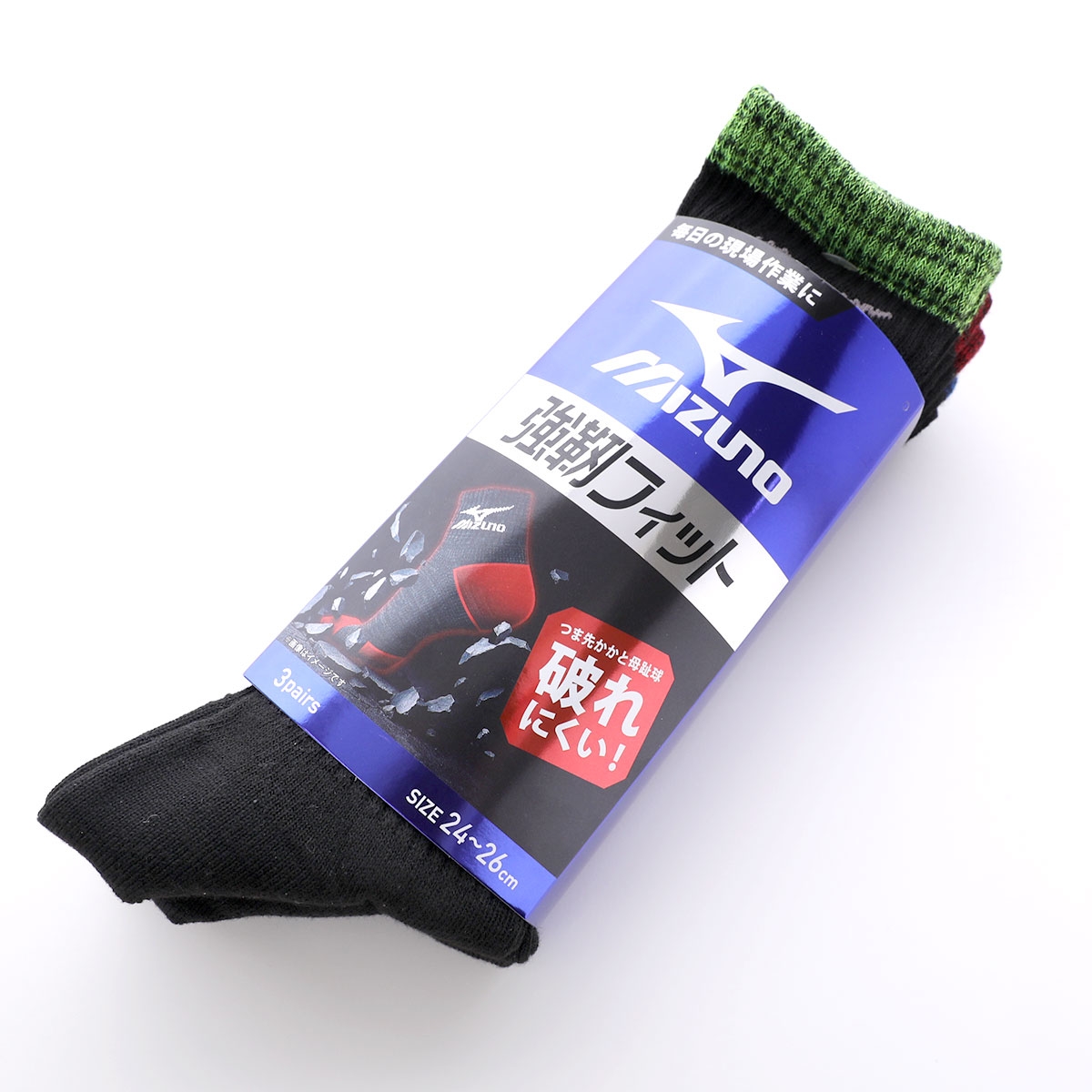 ミズノ ワークソックス 強靭フィット クルー丈 3足セット 破れにくい サポート 吸汗速乾 作業用 メンズ 靴下 24-26cmm MIZUNO