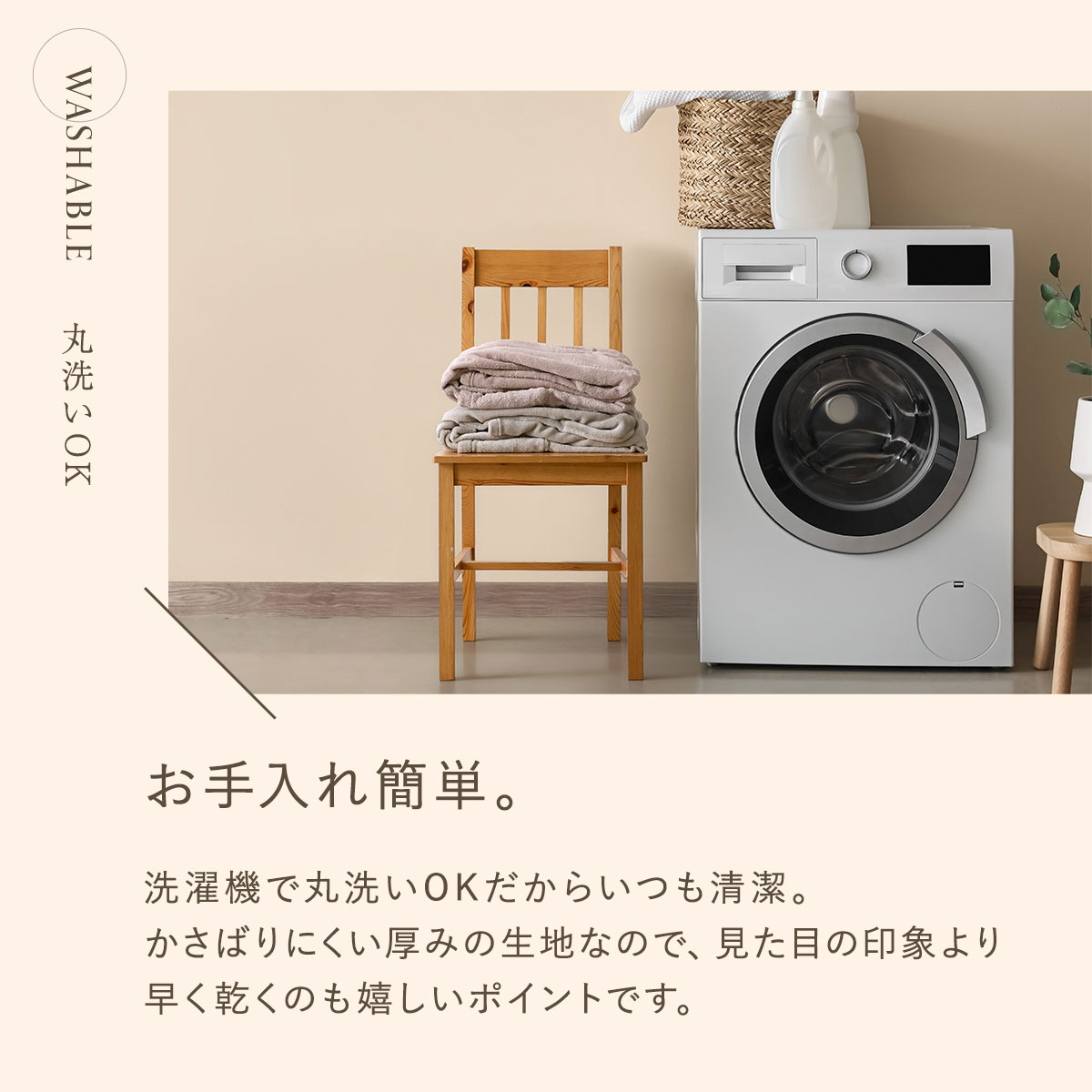 おうちの洗濯機で丸洗いでき、速乾性にも優れているのでお手入れもラクラクです。