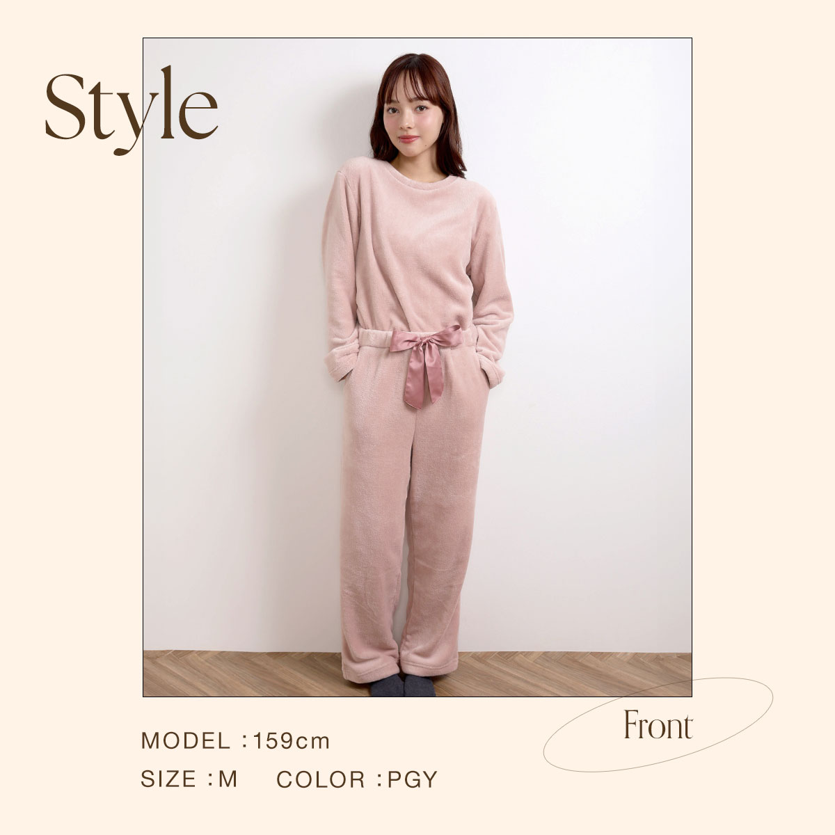 とろけmoco ルームウェア パジャマ 上下セット 長袖 もこもこ あったか 秋冬 リボン(PI-ピンク-M)