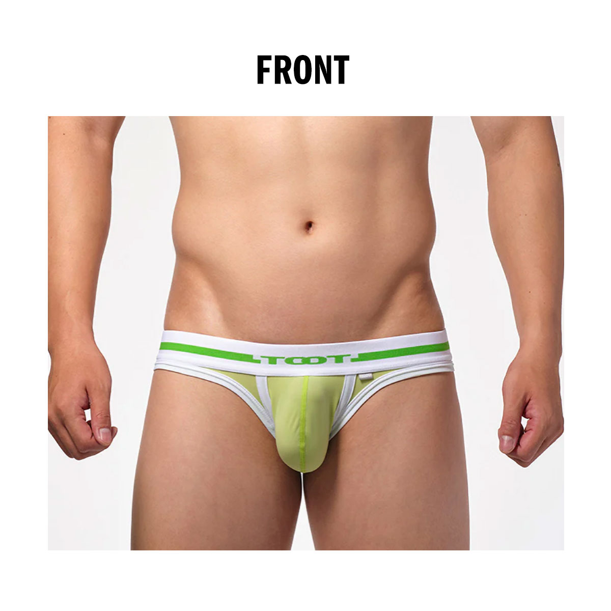アンダーヒップが見えるセクシーなカッティングが特徴のフロントカップ付きビキニ。TOOT定番の全方向に伸縮性の優れたストレッチナイロン生地を使用しており、動きやすさと快適さを両立。後ろ身ごろにはTOOTのエンブレムがプリントされワンポイントに。ネイビー・ダークグレー・ライム・レインの4色展開で、さまざまなスタイルに合わせてお楽しみいただけます。