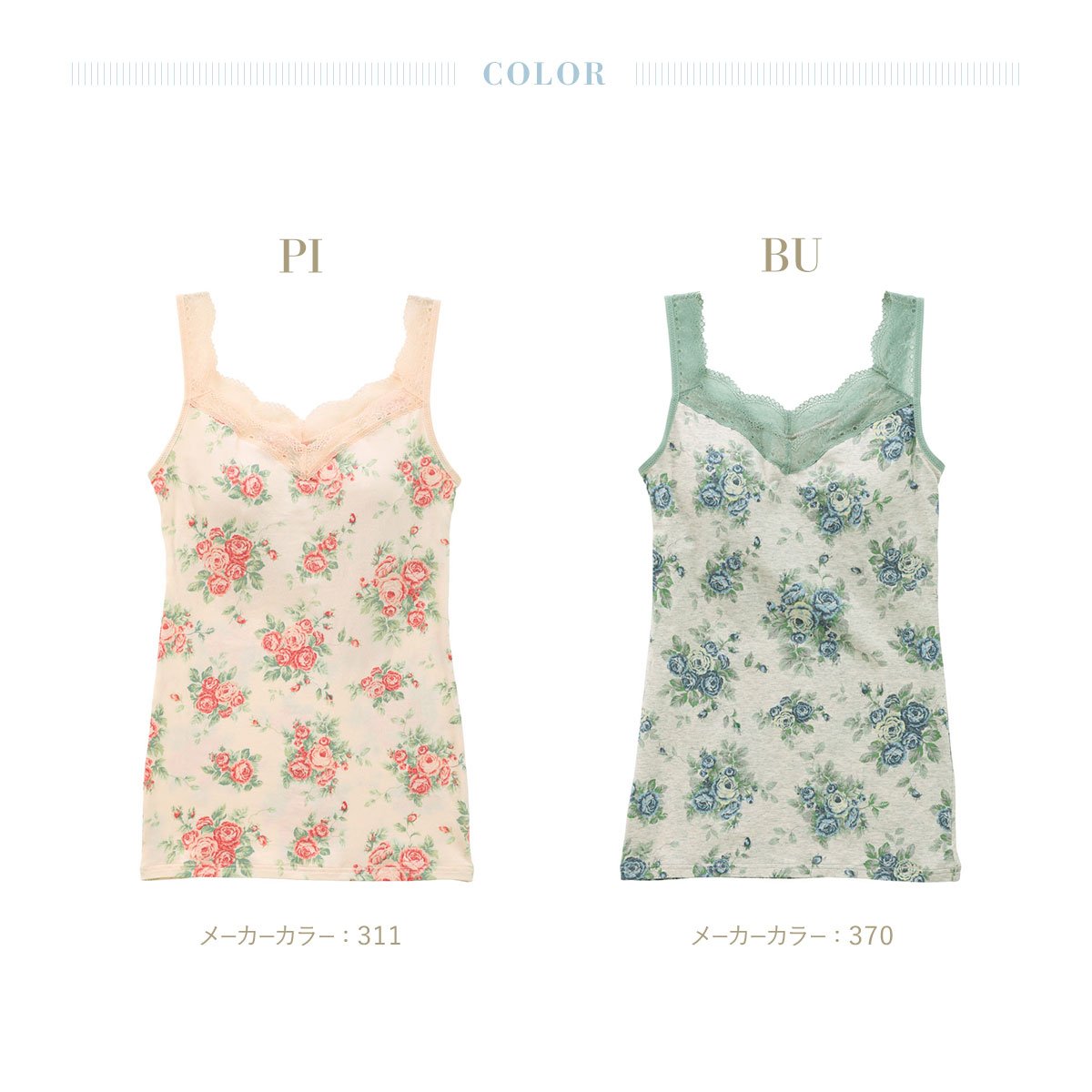 ブラジャー無しで1枚で楽に着られると人気のカップ付きキャミソールです。フロントからストラップ、背中に続くボーラーレースが華やか。背中に裏地がないのでソフトな着用感。カップ裏とアンダー部分には綿ベア天を使用し、肌への優しさにもこだわりました。