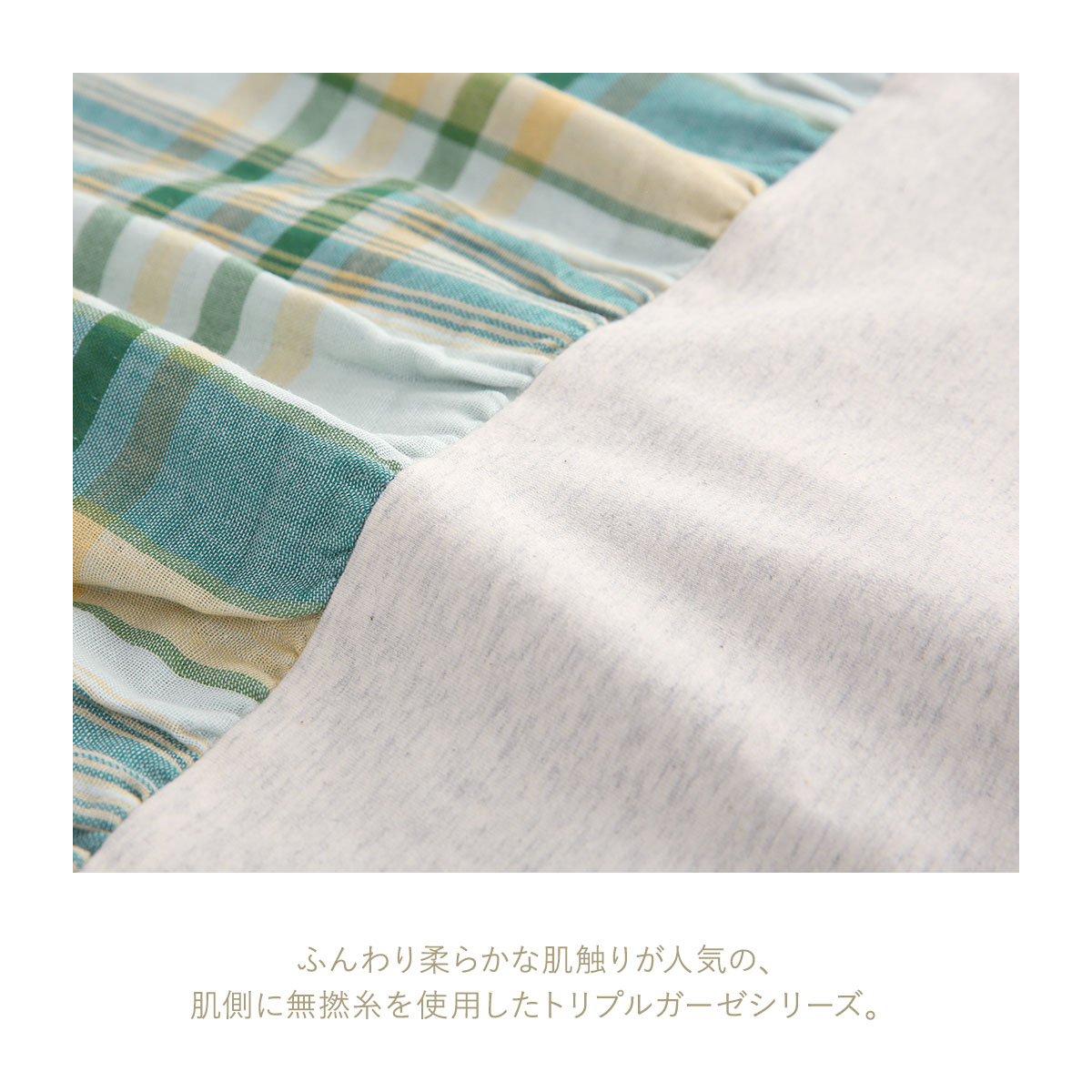 空気を含んだ3重構造のガーゼはふんわり柔らかな肌触り。肌側に無撚糸を使用した人気のトリプルガーゼシリーズのルームウェアです。