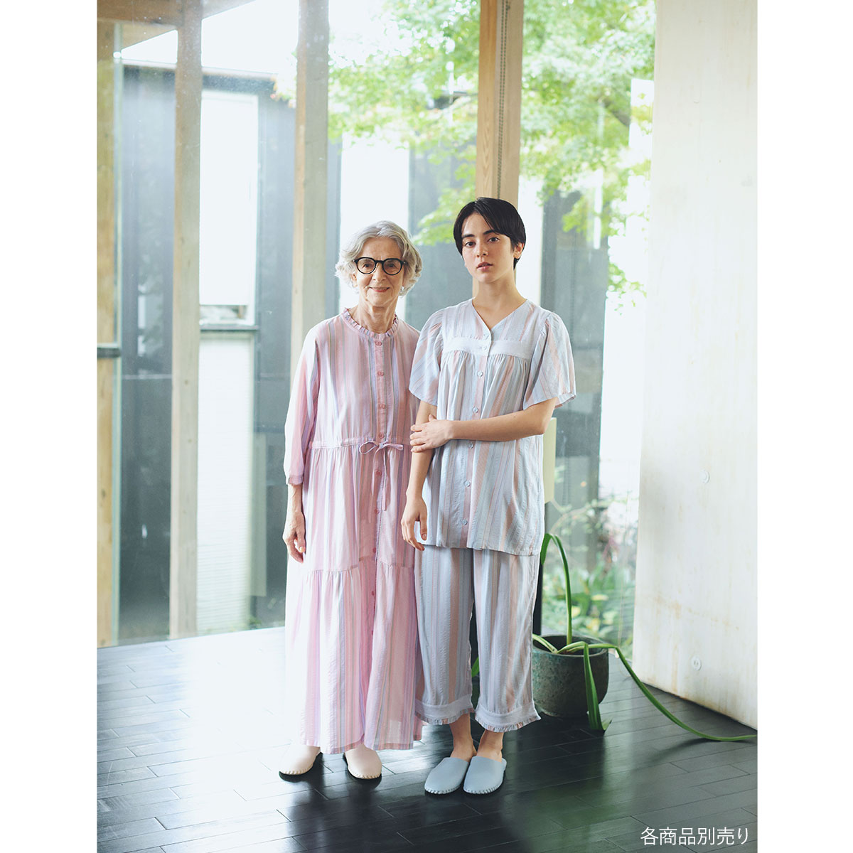 肌離れが良く、春夏にぴったりなナイトウェアシリーズは、凹凸のある生地を使用し、自然な落ち感が美しいです。