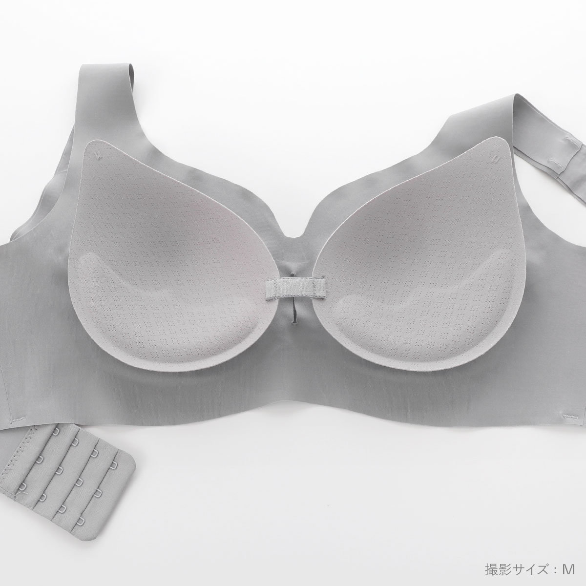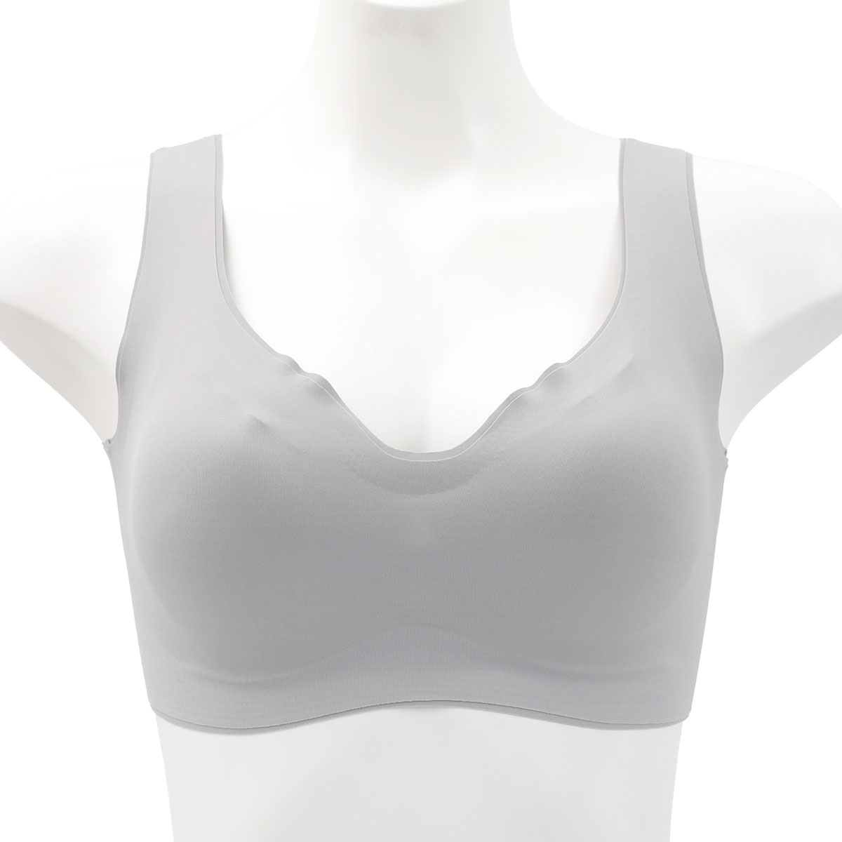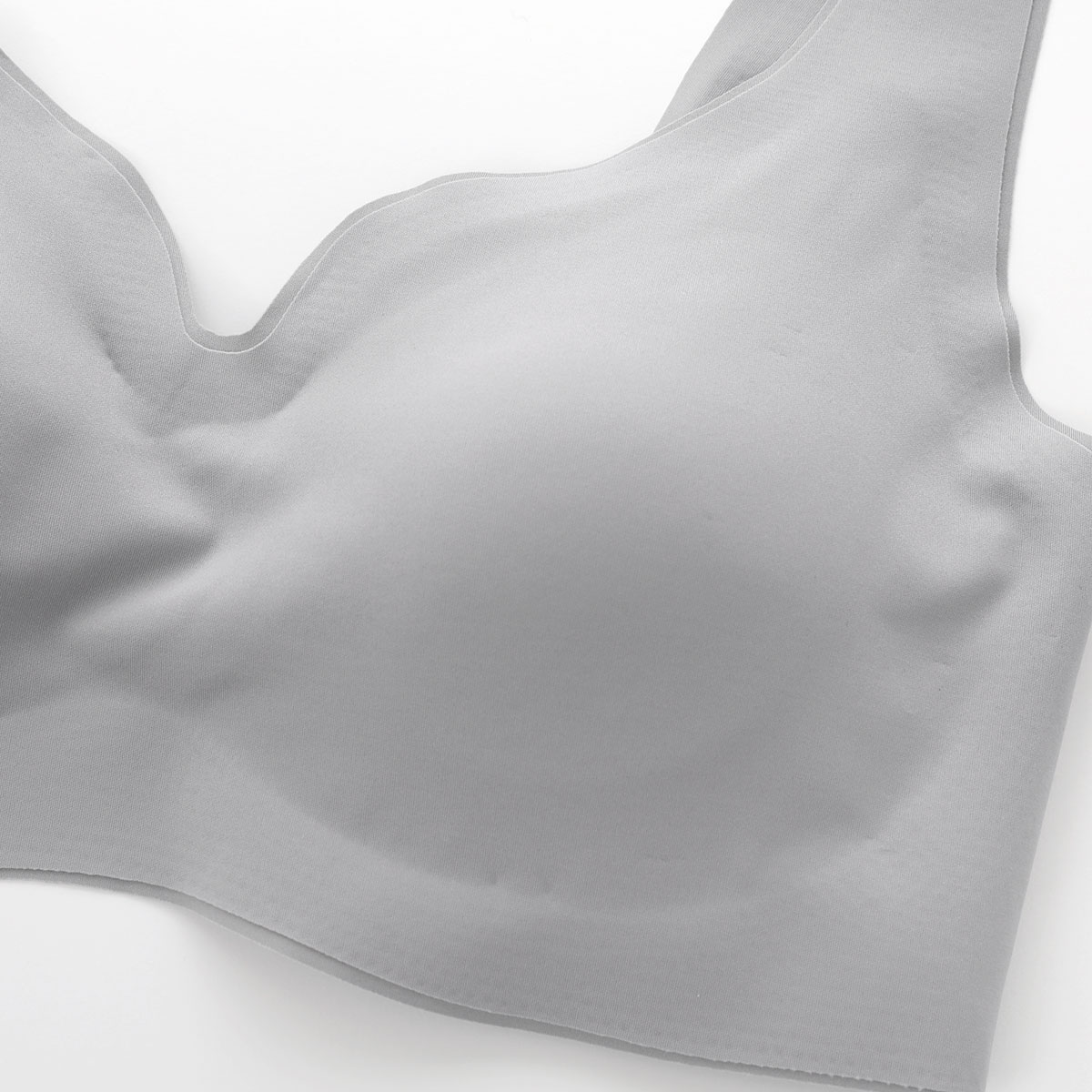 薄くてなめらかなシームレス生地を使用したノンワイヤーブラ。伸縮性に優れたするんとなめらかな生地が、素肌に溶け込むように心地よくフィットします。