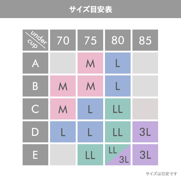 | 仕 様 | ・ホックの数:3段4列 ・パッド取外し:可能 ・ノンワイヤー ・サイドボーン:なし ・ストレッチ素材 ・脇高設計 ・タグレス(洗濯表示直接プリント) |