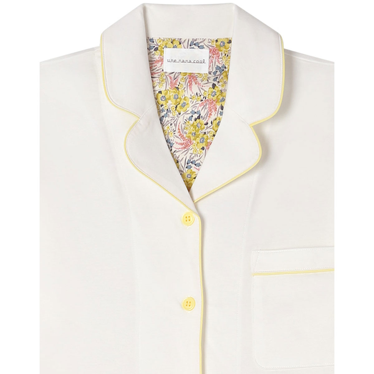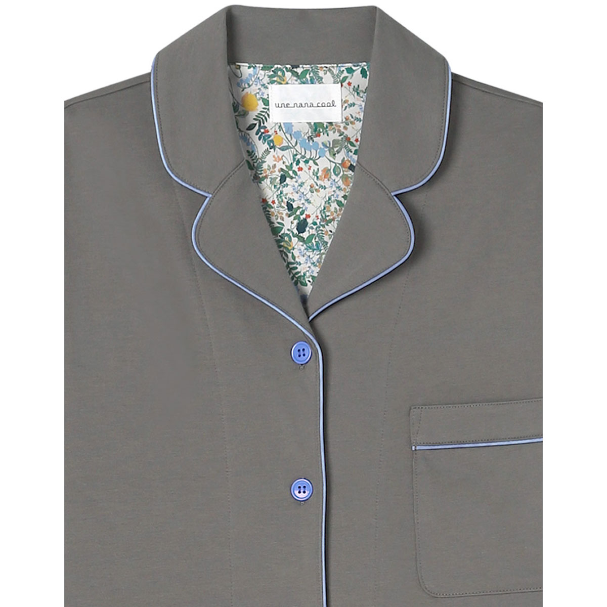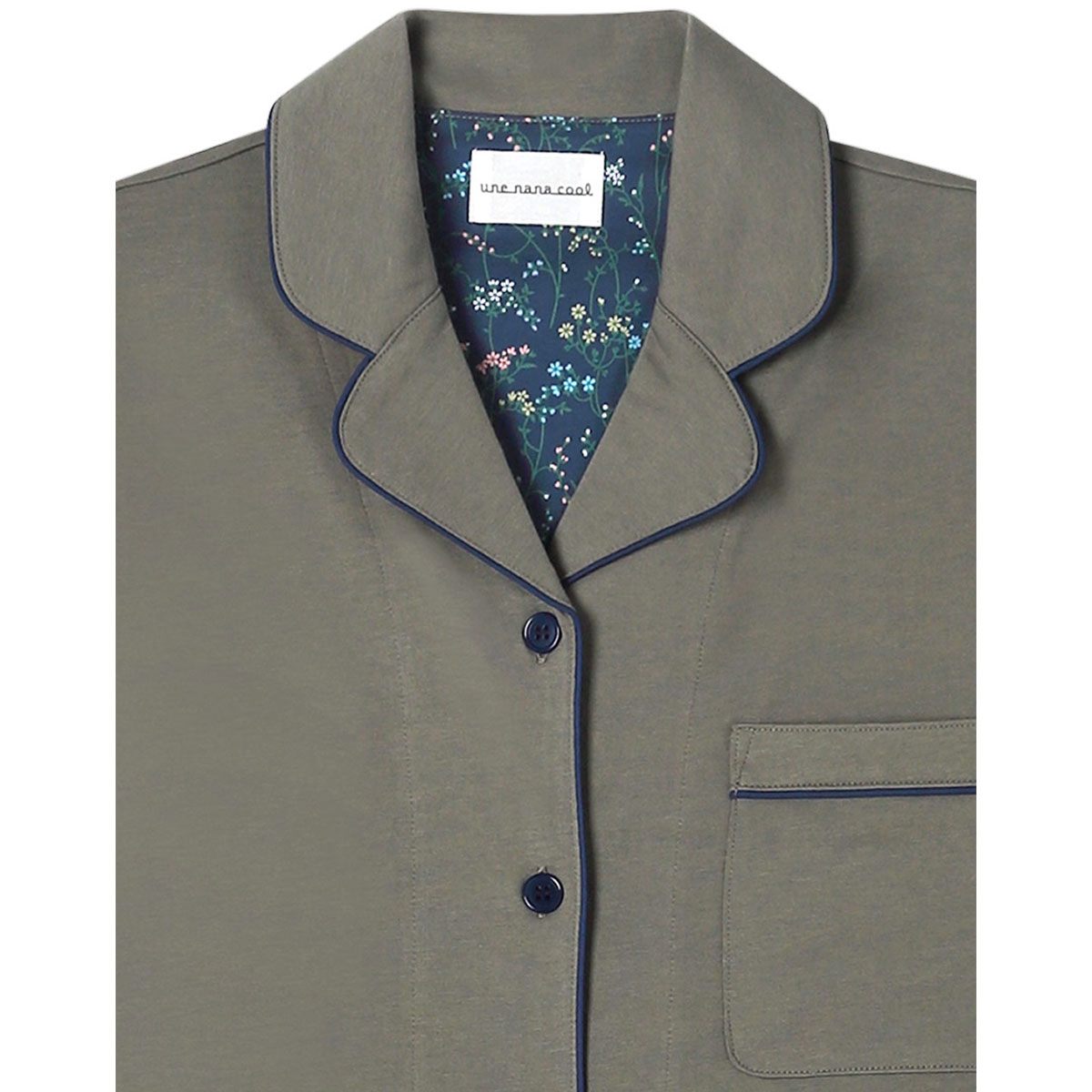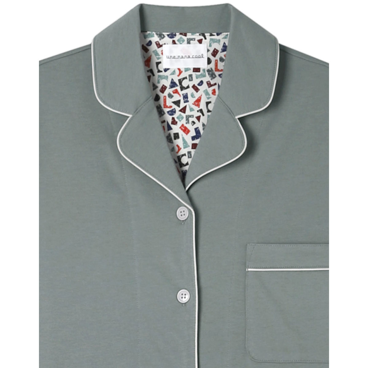 なめらかなハイゲージ素材を使用した開襟シャツの長袖パジャマ。