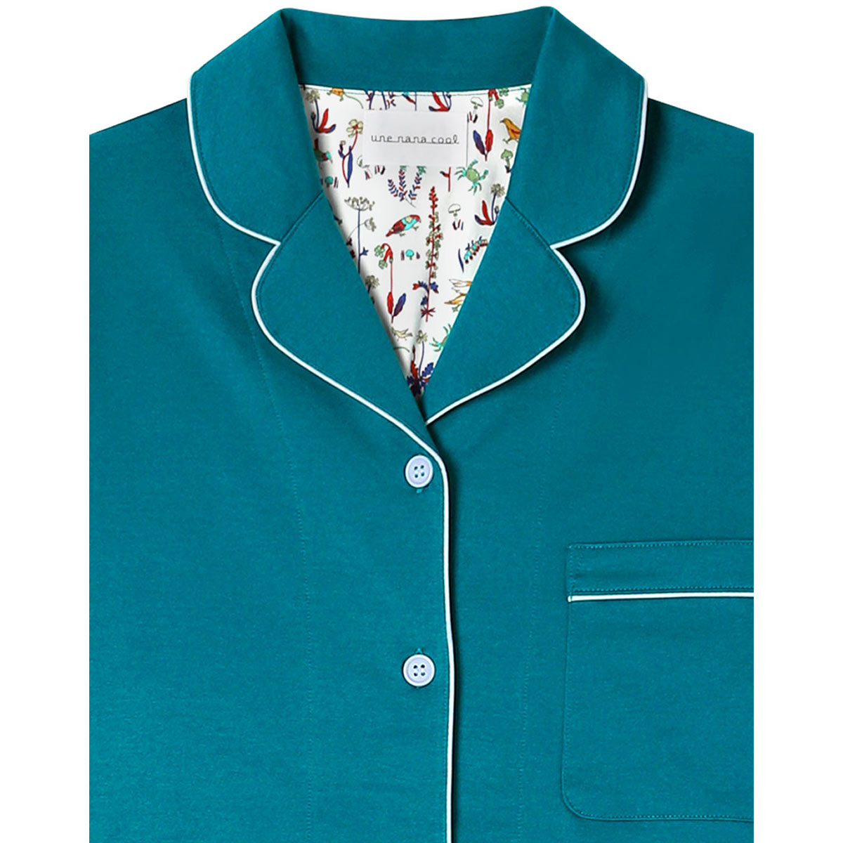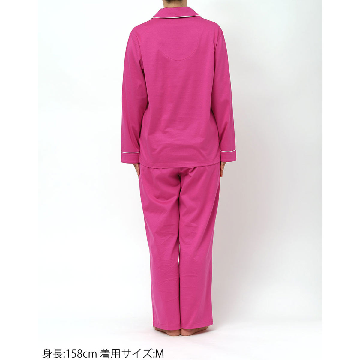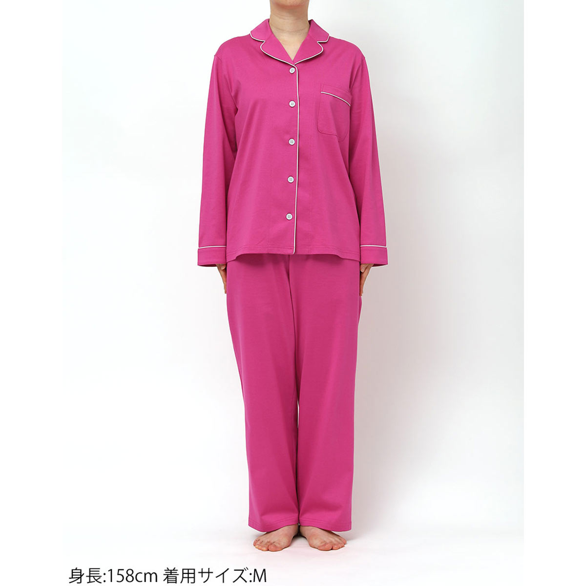 綿100%の天竺素材の開襟シャツの長袖パジャマ。