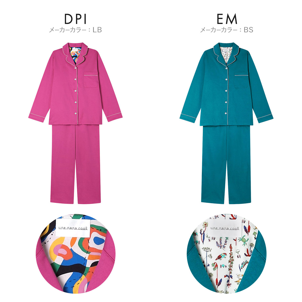 生地に限りがあるため、各カラーともに数量限定でのご用意となりますが、少量ずつ異なるテキスタイルを活用することで、バリエーションが豊富なパジャマがそろいました。