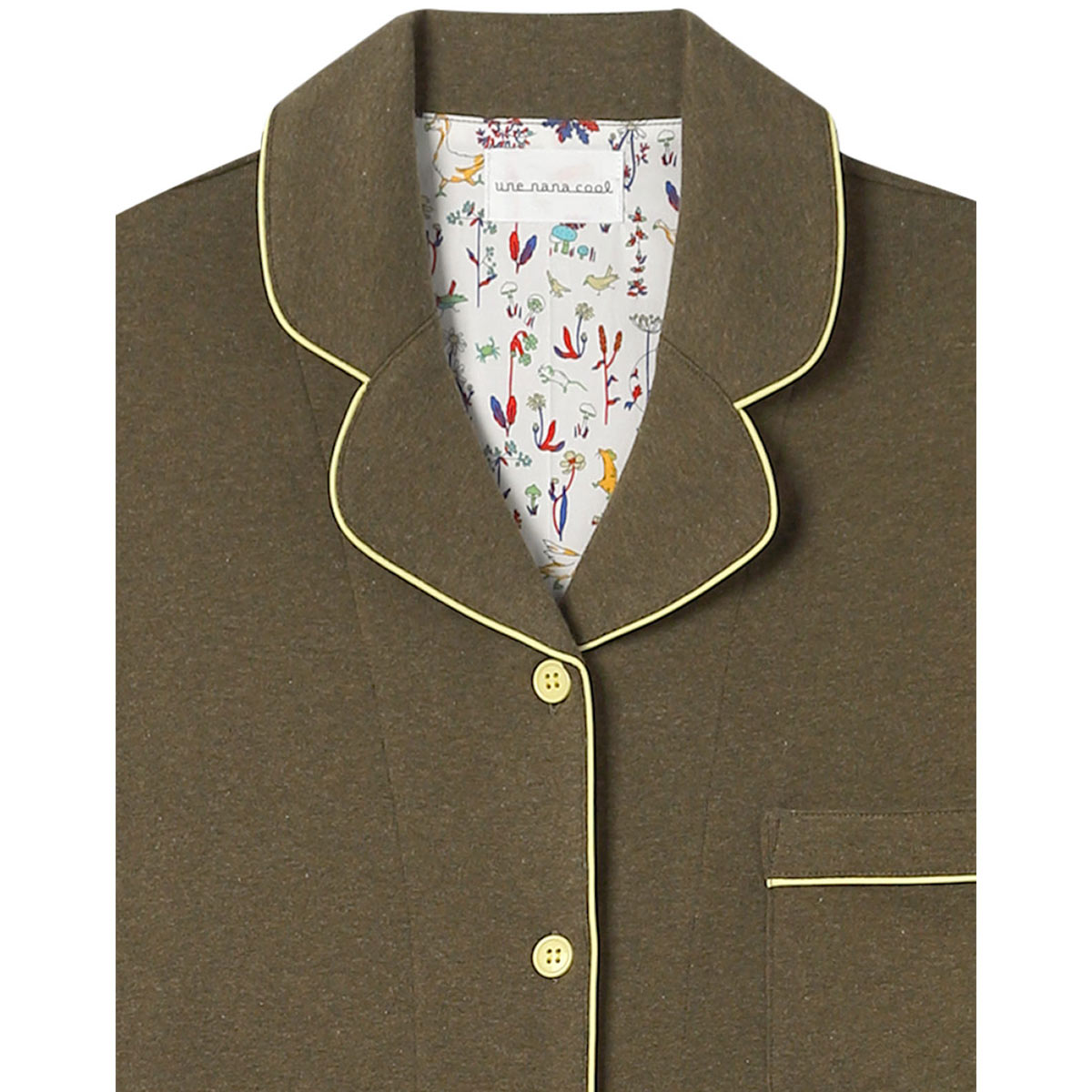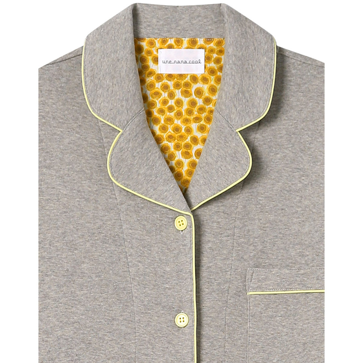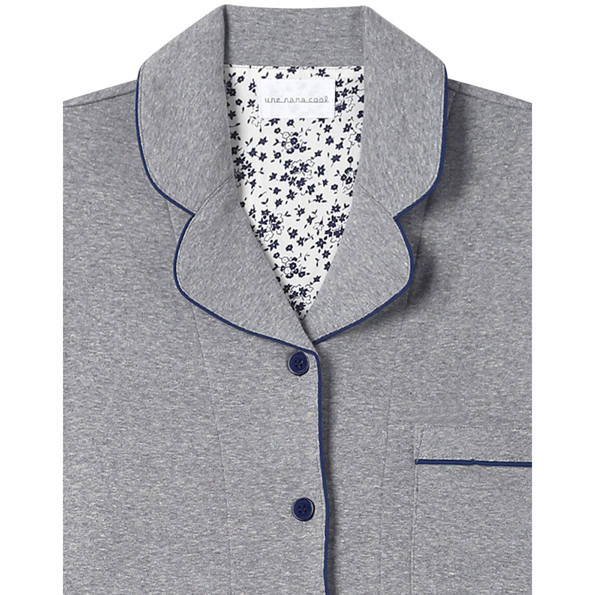 綿100%のフライス生地の開襟シャツの長袖パジャマ。