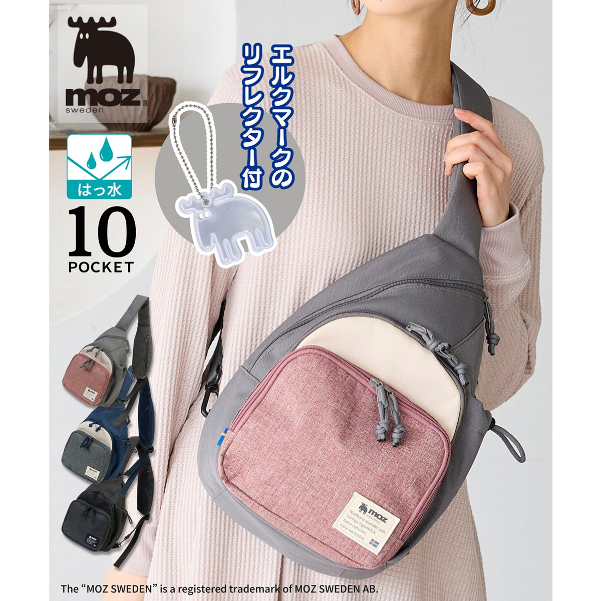 お買い物やお出かけにぴったりの、使いやすいmoz(モズ)軽量10ポケットボディバッグ。必要な身の回りの荷物を入れるのにちょうど良いサイズ感です。