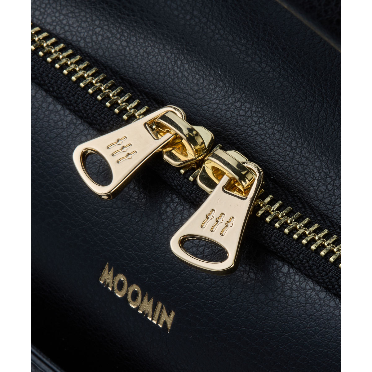 裏地はニョロニョロの総柄プリントで遊び心をプラス。手提げとしても使える2WAY仕様。ムーミンロゴの箔押しなど、細部までこだわった優秀バッグです。