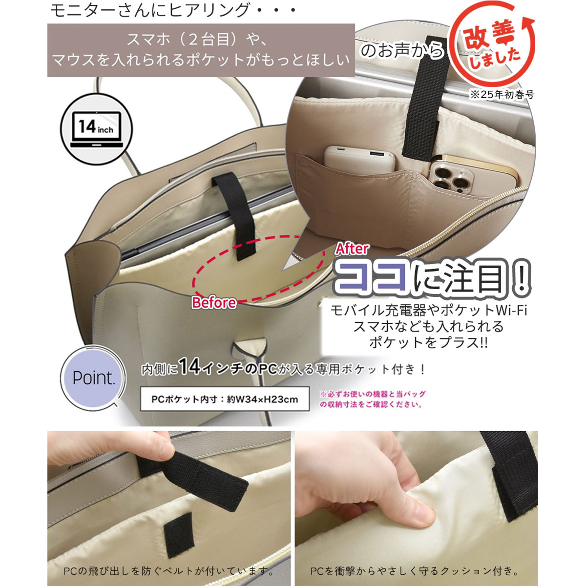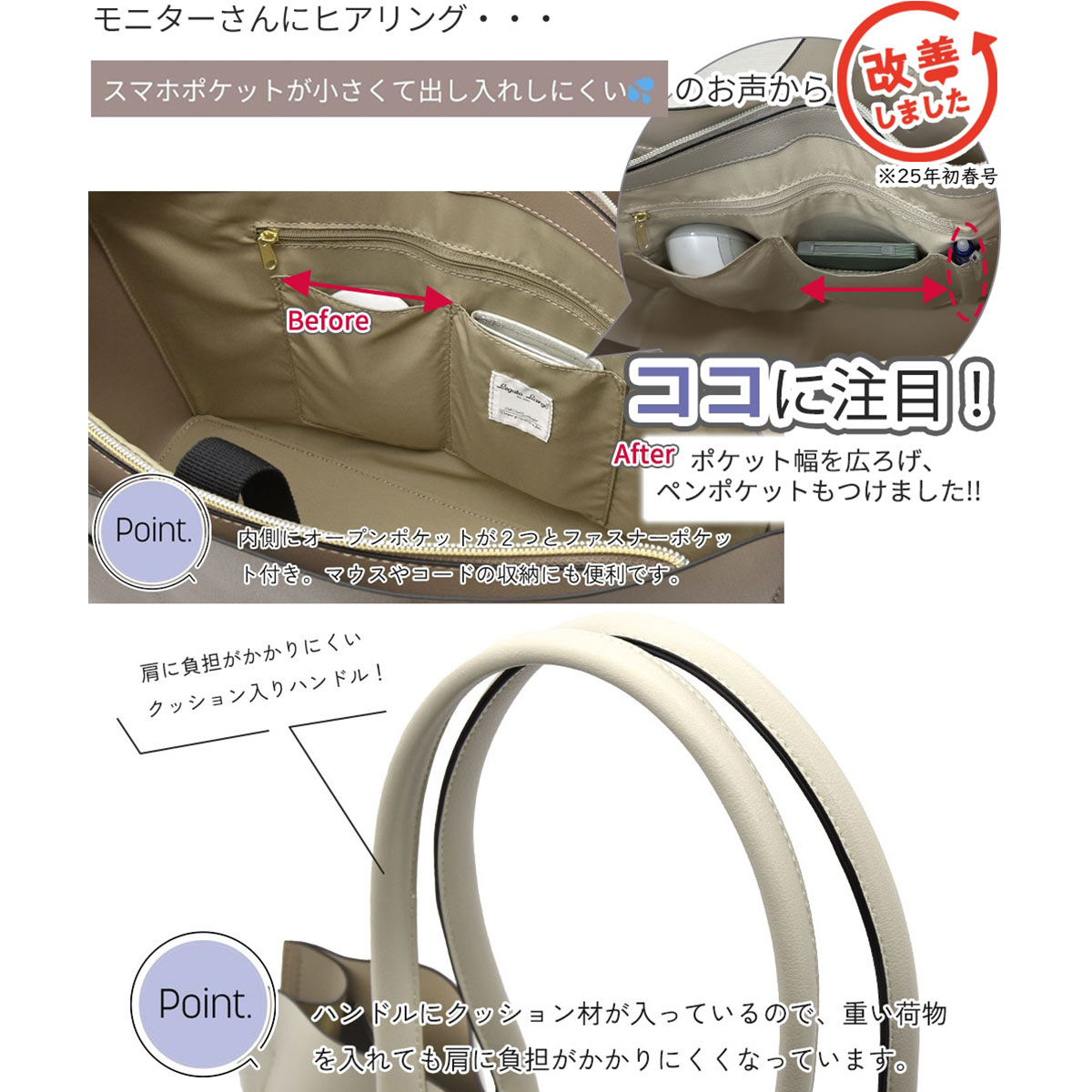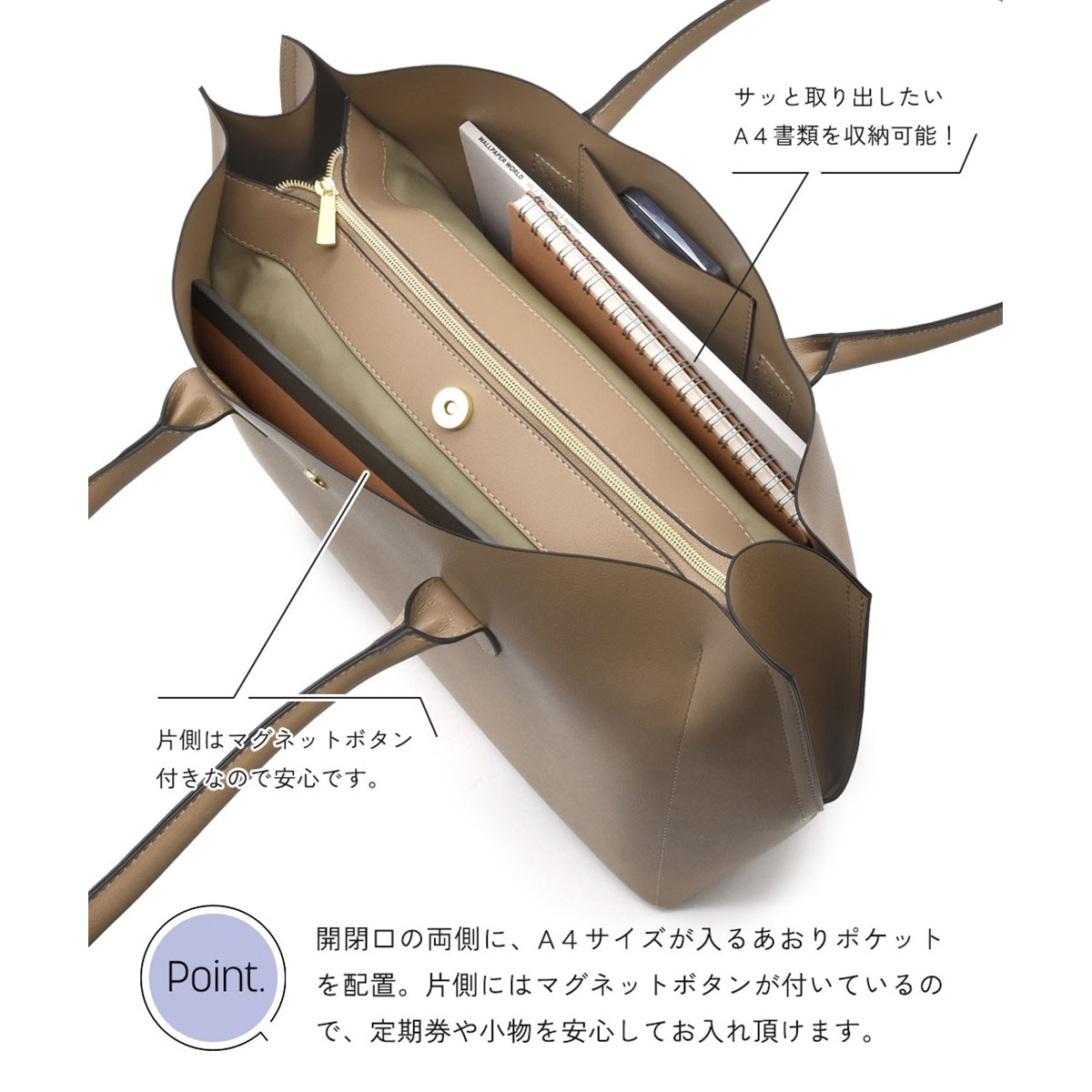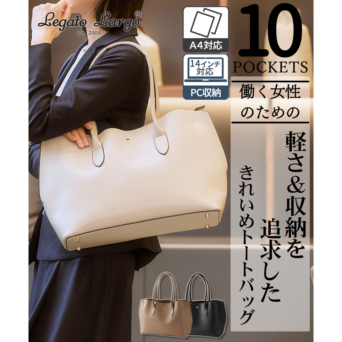 レガートラルゴ 10ポケットPC収納付かるいトートバッグ 軽量 通勤用 仕事用 A4対応 オフィス女子モニターコラボ 軽い Legato Largo