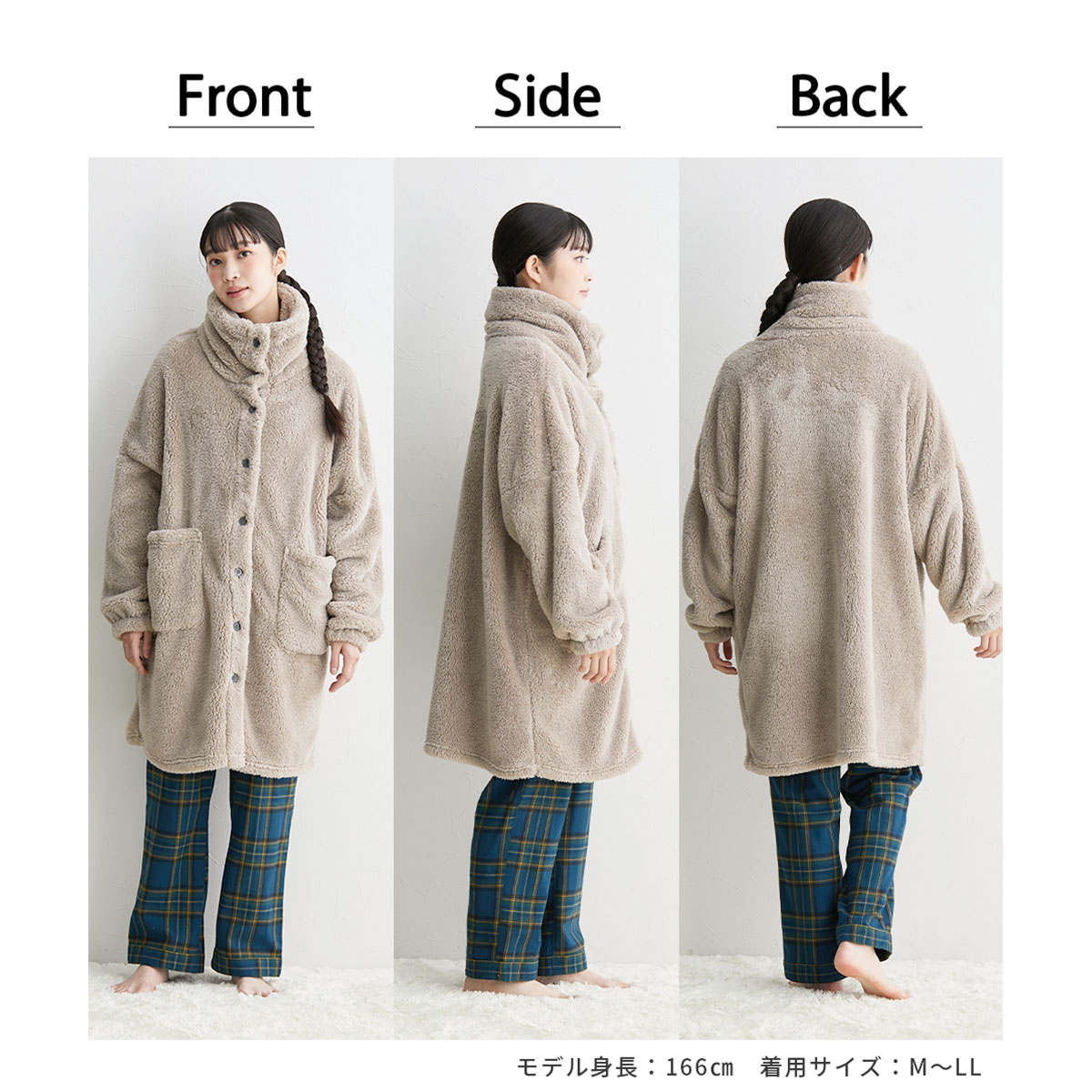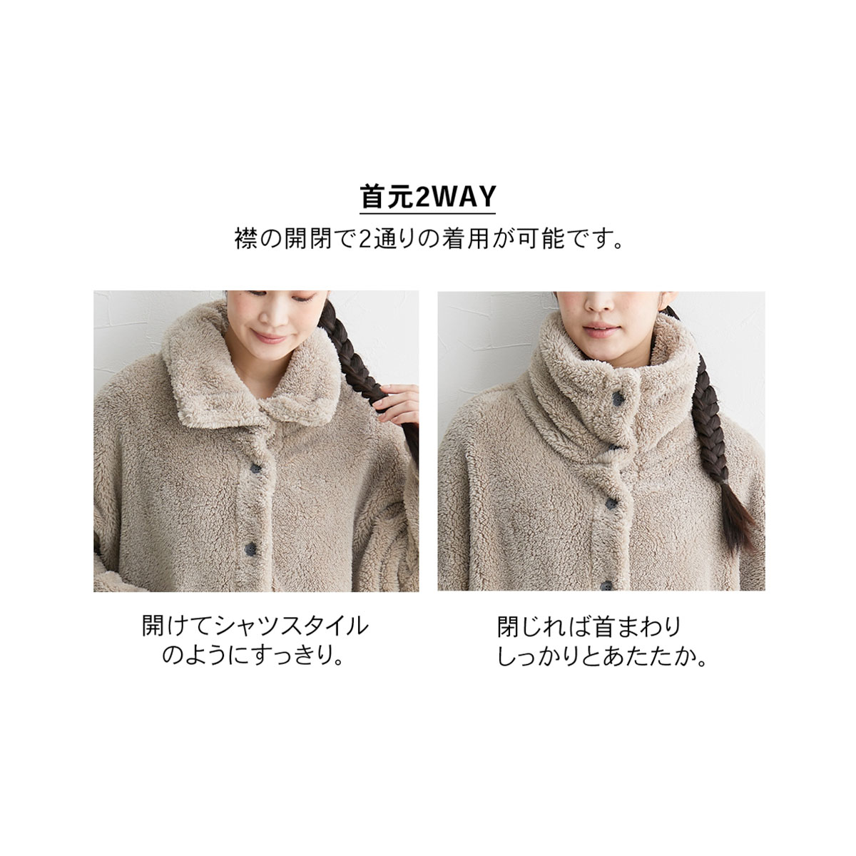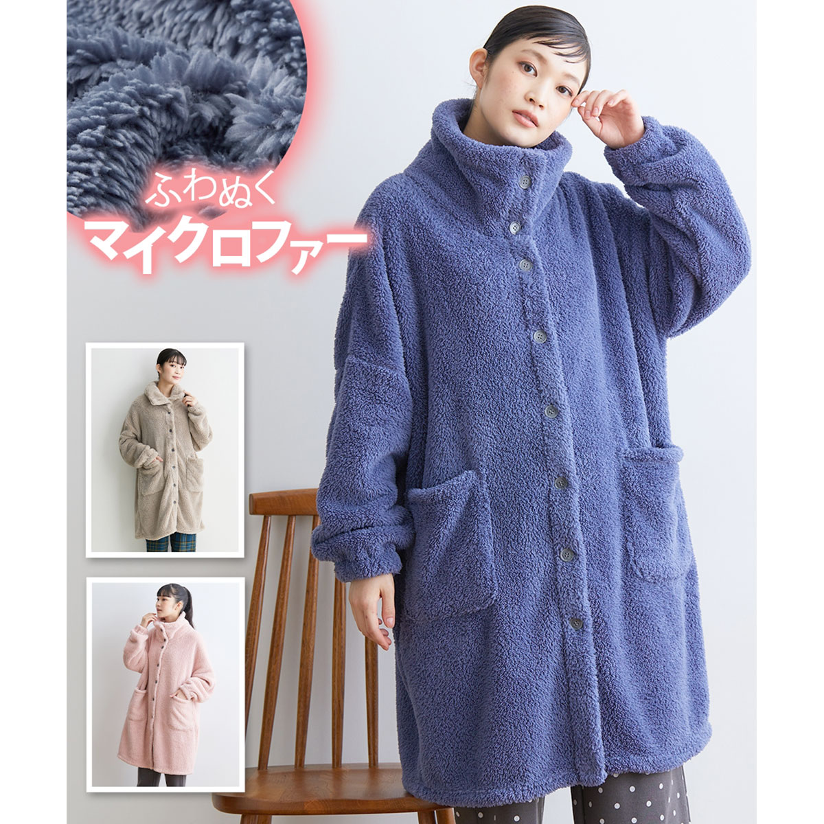 ふわぬく!マイクロファー 首あったか前開きルームガウン