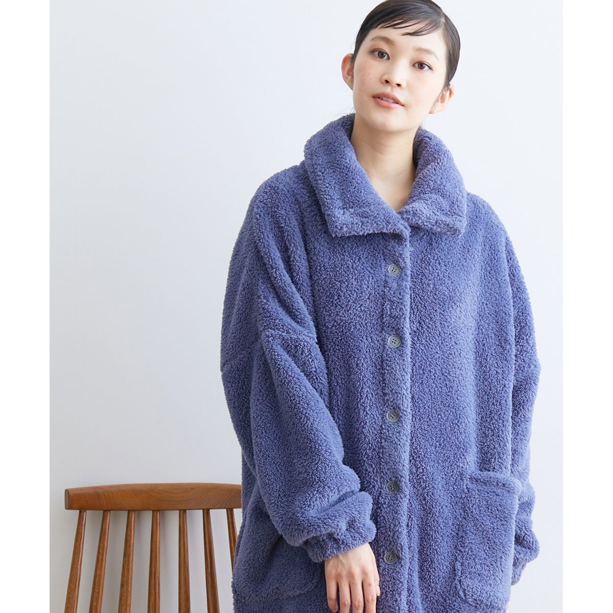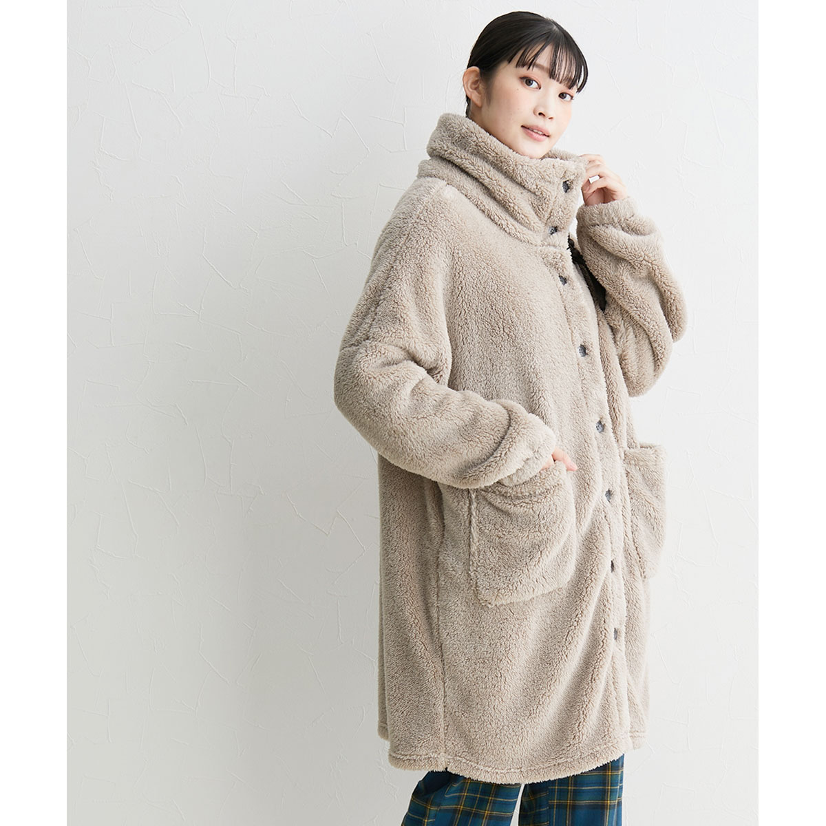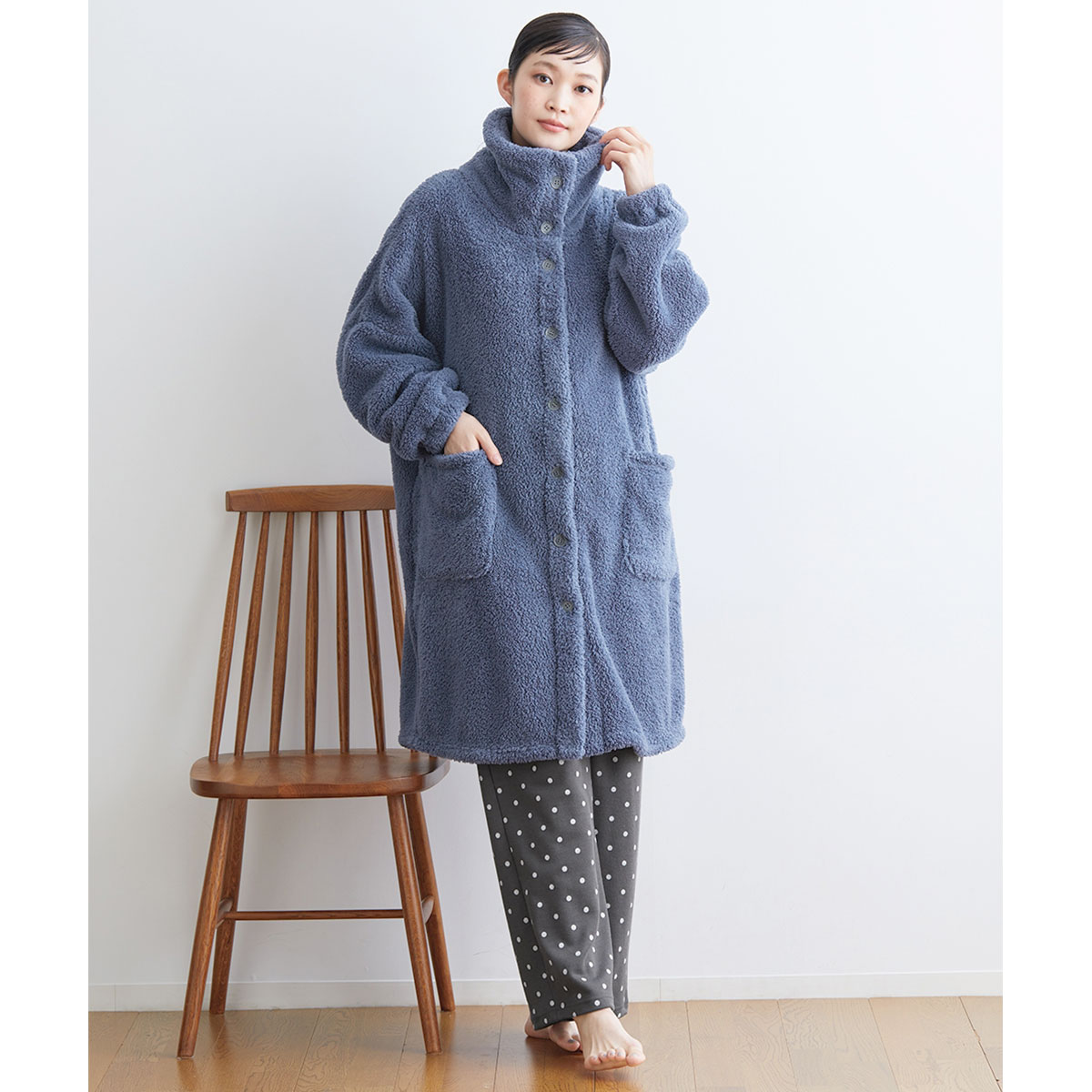 ふわぬく!マイクロファー 首あったか前開きルームガウン